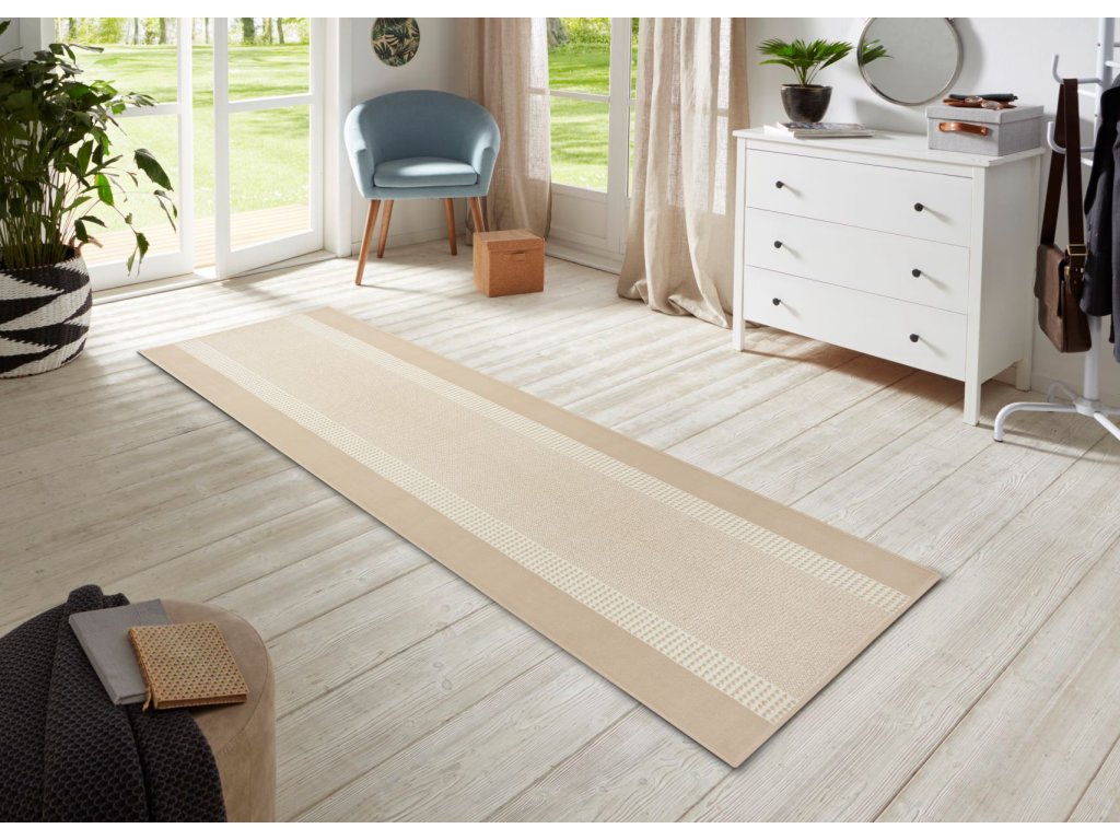 Běhoun v barvě slonovinové kosti prosvětlí i tu nejtmavší chodbu nebo předsíň. Jeho předností je měkký a komfortní došlap, který zajišťuje středně vysoký střižený vlas. Vyrábí se ze 100% polypropylenu, a proto je odolný a snadno udržitelný. Můžete ho jednoduše vysávat a čistit pomocí kobercové pěny či šamponu.