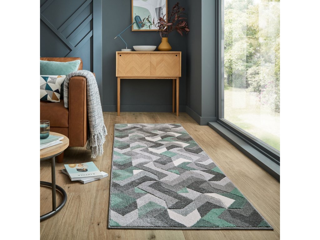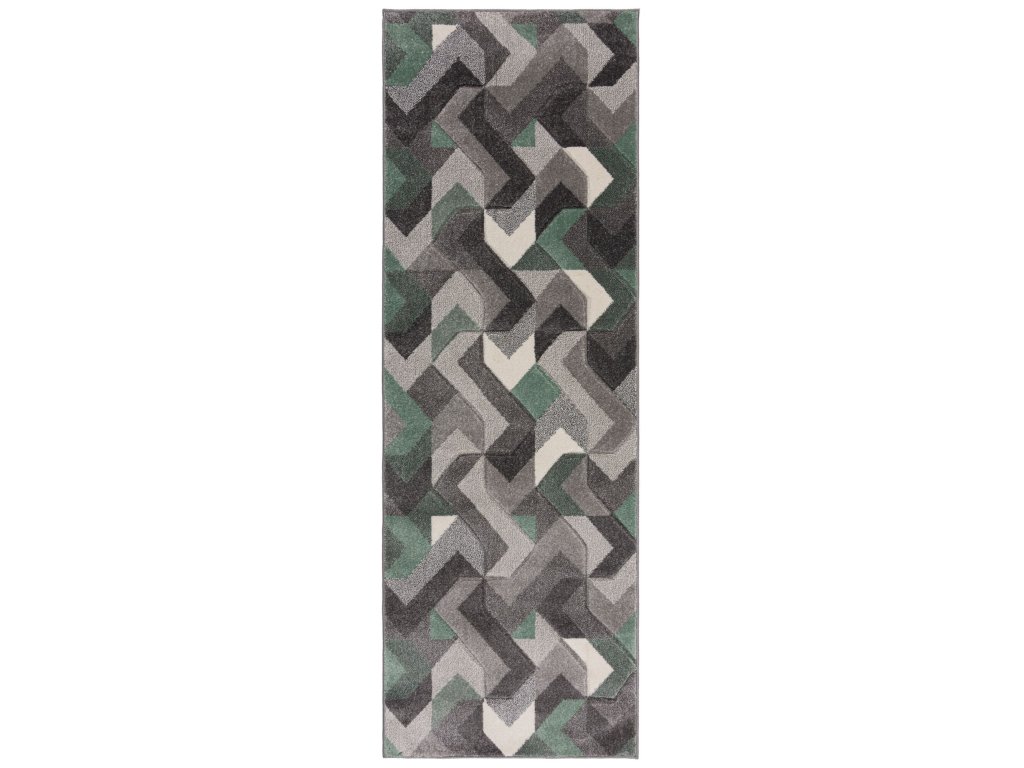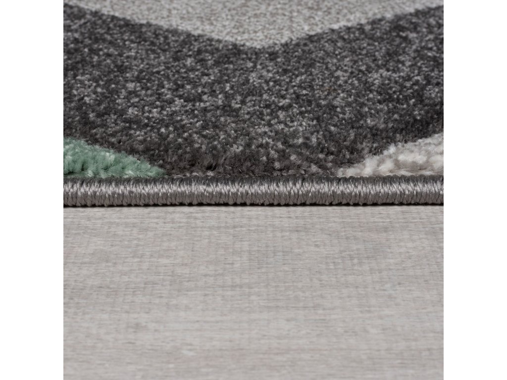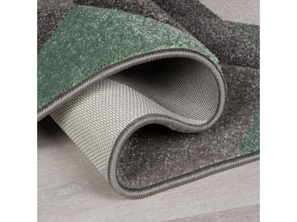 Běhoun přináší atraktivní kombinaci mátově zelené barvy a různých odstínů šedé, která osvěží každý interiér. Geometrický vzor s ručně vyřezávanými obrysy tvarů vytváří zajímavý 3D efekt. Krátký vlas zaručuje snadnou údržbu, což ocení především rodiny s malými dětmi nebo domácími mazlíčky. Polypropylen koberci poskytuje vysokou odolnost a příjemný komfort.