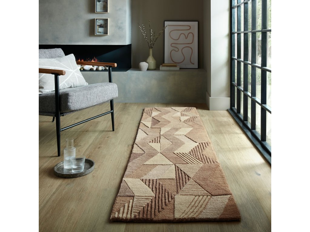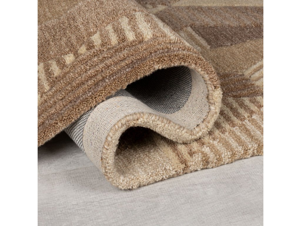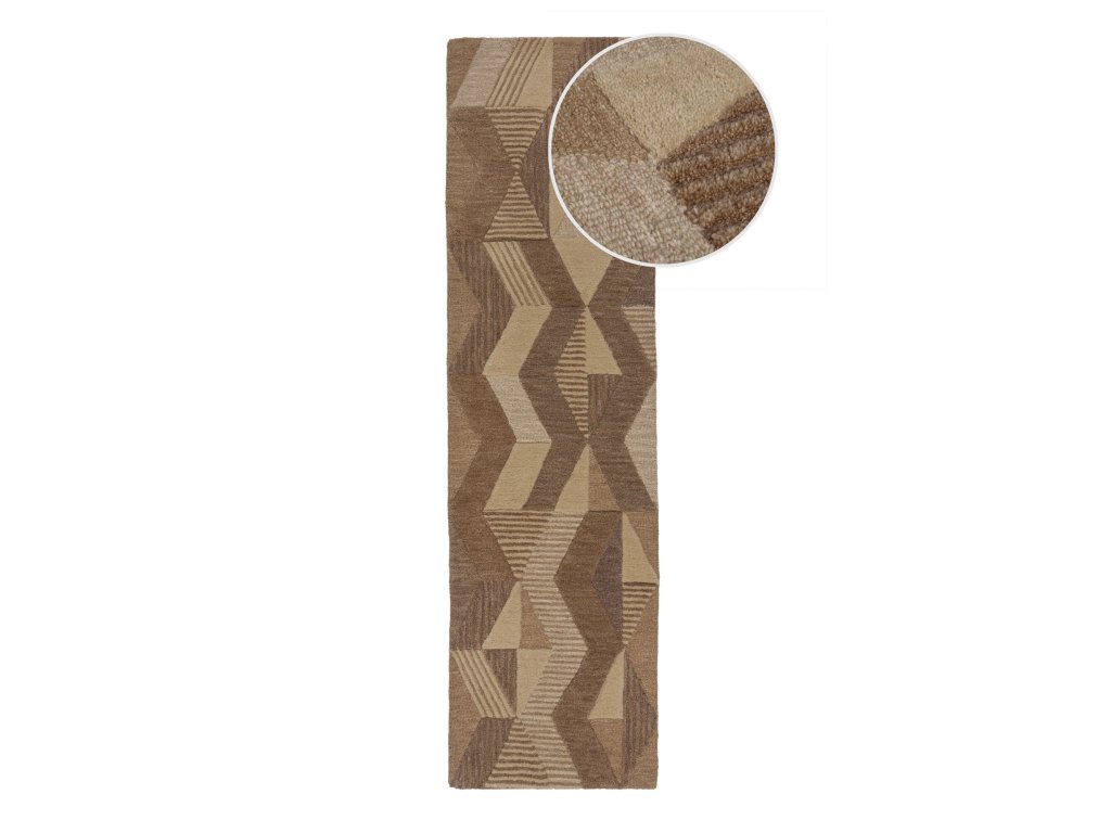 Běhoun v různých odstínech hnědé barvy vyniká svým atraktivním geometrickým vzorem, který dodává interiéru sofistikovaný vzhled. Kombinace barev přináší teplý a útulný pocit, zatímco kvalitní materiál zajišťuje měkkost a pohodlí při chůzi. Díky své konstrukci efektivně izoluje teplo a tlumí zvuk, což oceníte zejména v obývacích pokojích nebo ložnicích.