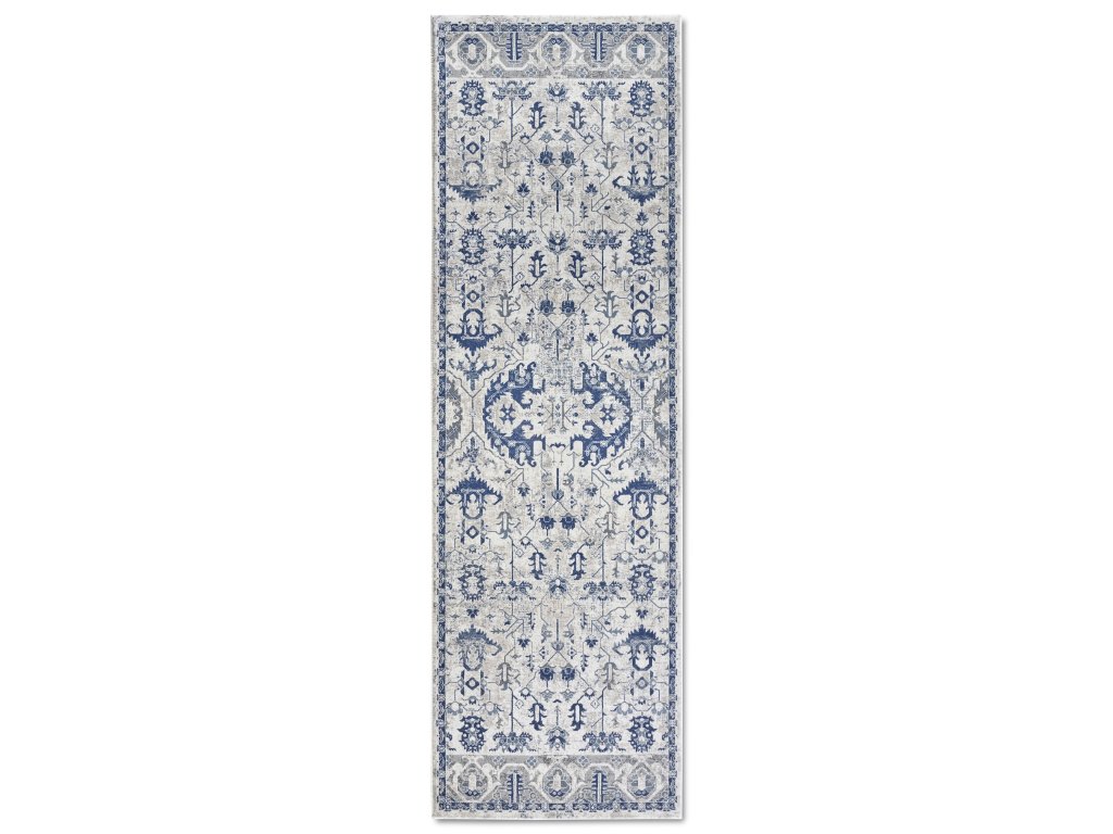 Modro-bílý běhoun s originálním vzorem okamžitě zaujme svou jedinečnou estetikou a stylem. Středně vysoký střižený vlas poskytuje příjemný pocit při chůzi a zároveň odolává opotřebení, což je ideální pro frekventované prostory. Díky rubové straně s latexem zůstává pevně na svém místě, což ocení zejména rodiny s dětmi nebo domácími mazlíčky.