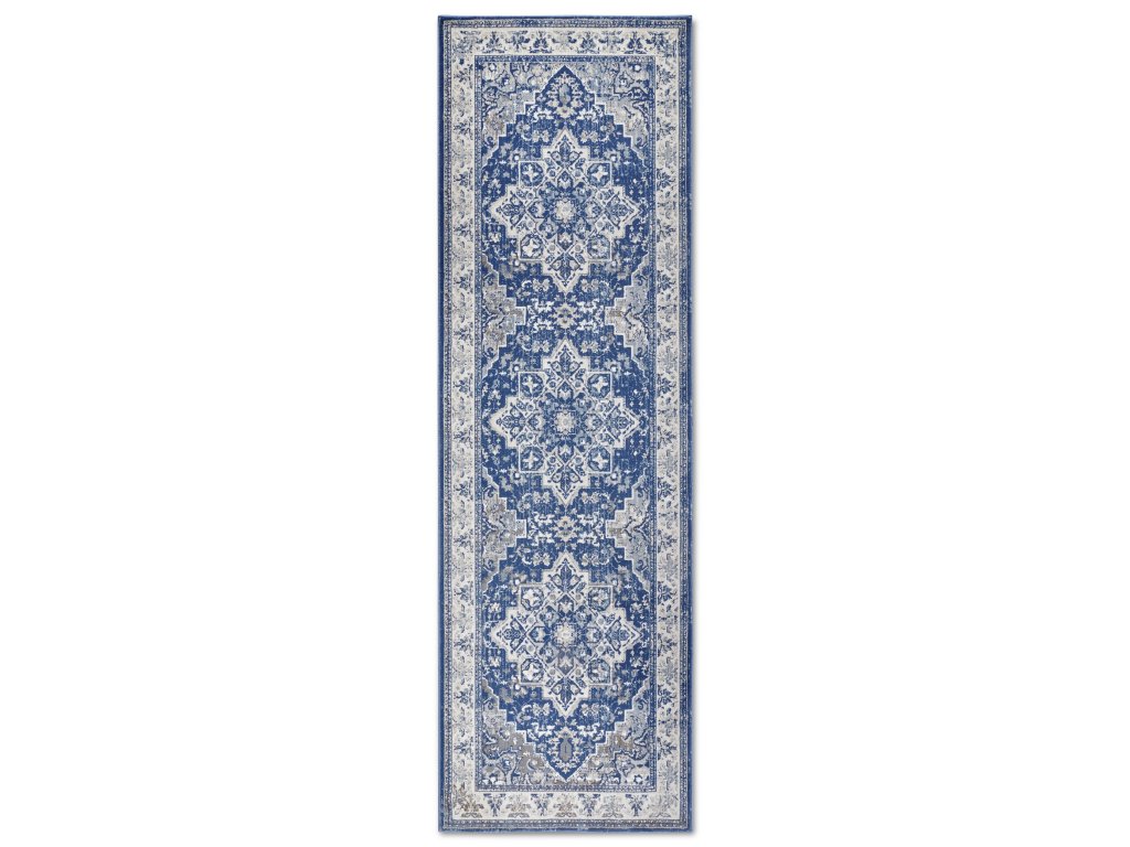 Modro-bílý běhoun v orientálním stylu zaujme na první pohled svou elegancí a jemnými detaily. Středně vysoký střižený vlas poskytuje nejen komfort, ale také vysokou odolnost vůči opotřebení. Díky rubové straně s latexem koberec pevně drží na místě a také je kompatibilní s vytápěnými podlahami, takže si můžete užívat teplo a pohodlí i v zimních měsících.