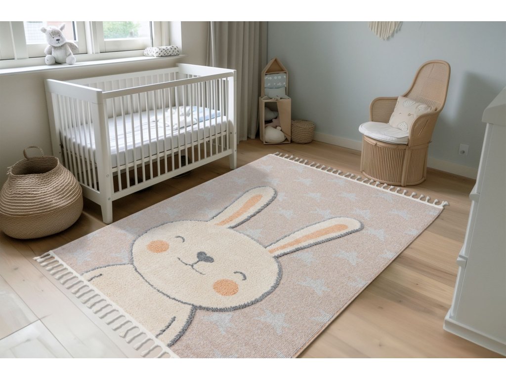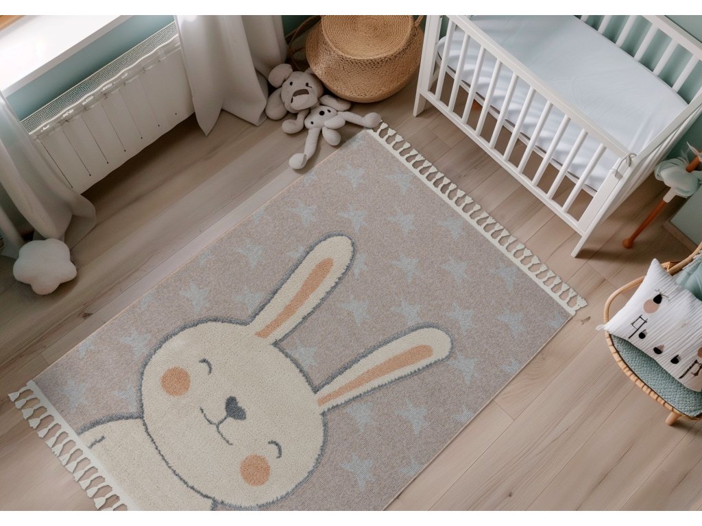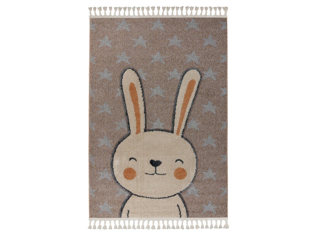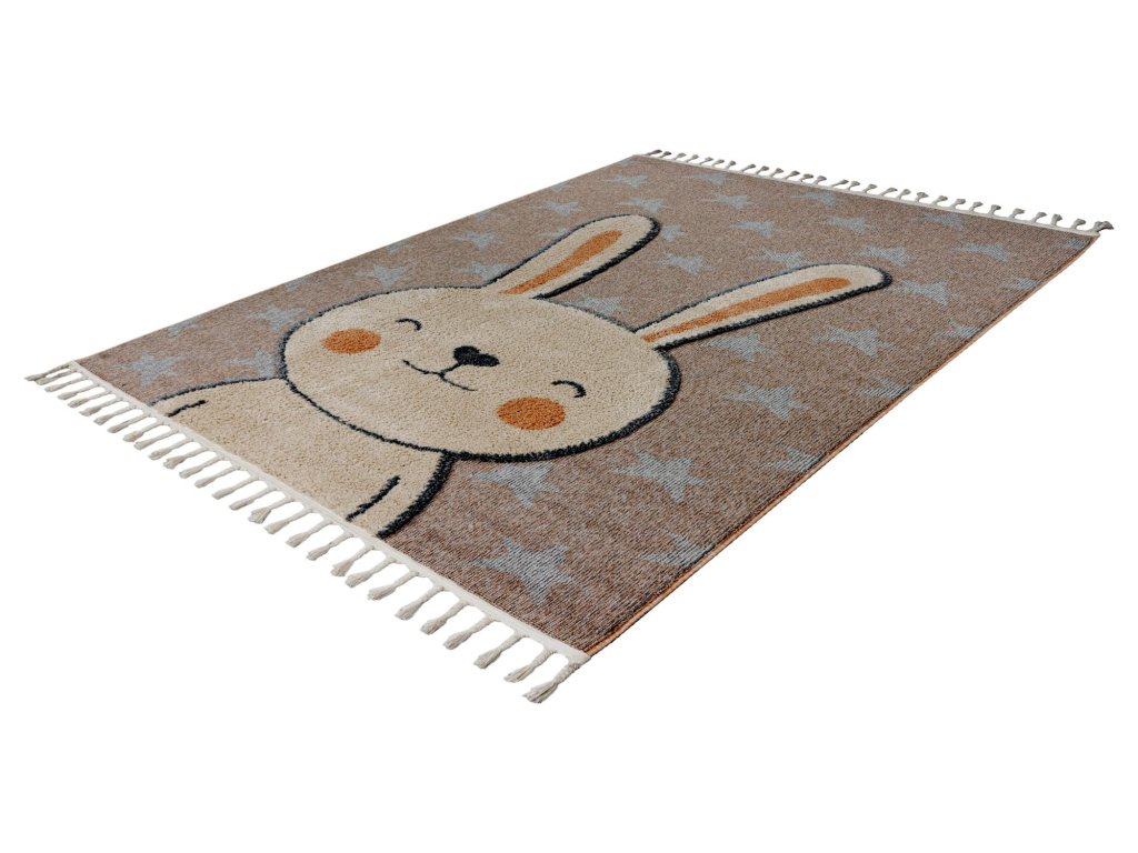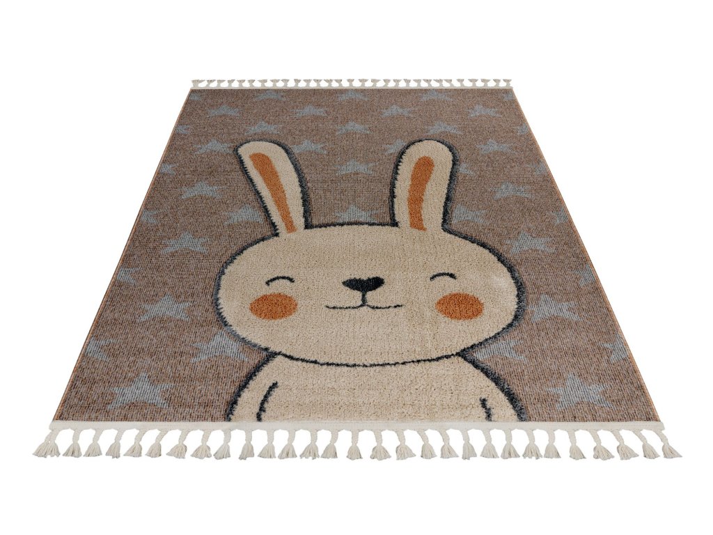 Dětský kusový koberec My Fano 390 Rabb v béžové barvě a obdélníkovém tvaru je vyroben z materiálu polypropylen frisé. Tento koberec se skvěle hodí do moderního interiéru, ale i do dalších místností, kde oceníte pohodlí i styl. Nadčasový design a kvalitní zpracování z něj dělají ideální volbu pro váš domov. Koberec je certifikován podle standardu ÖekoTex, což zaručuje zdravotní nezávadnost použitých materiálů. Koberec má obšití na delších stranách a na kratších elegantní třásně.