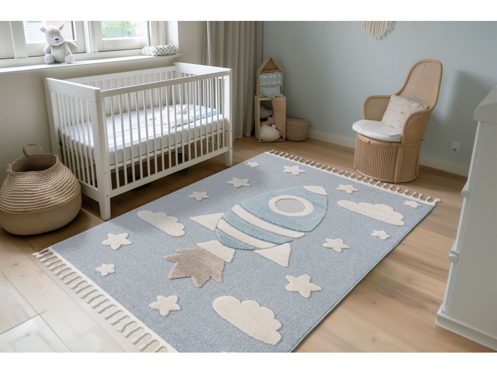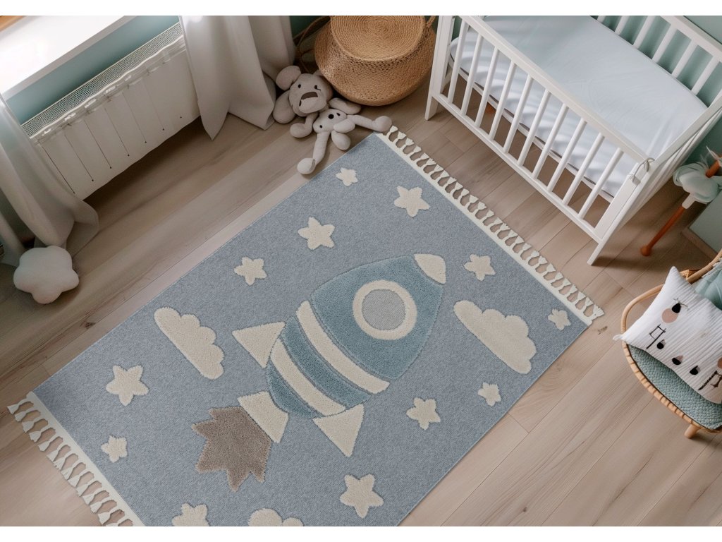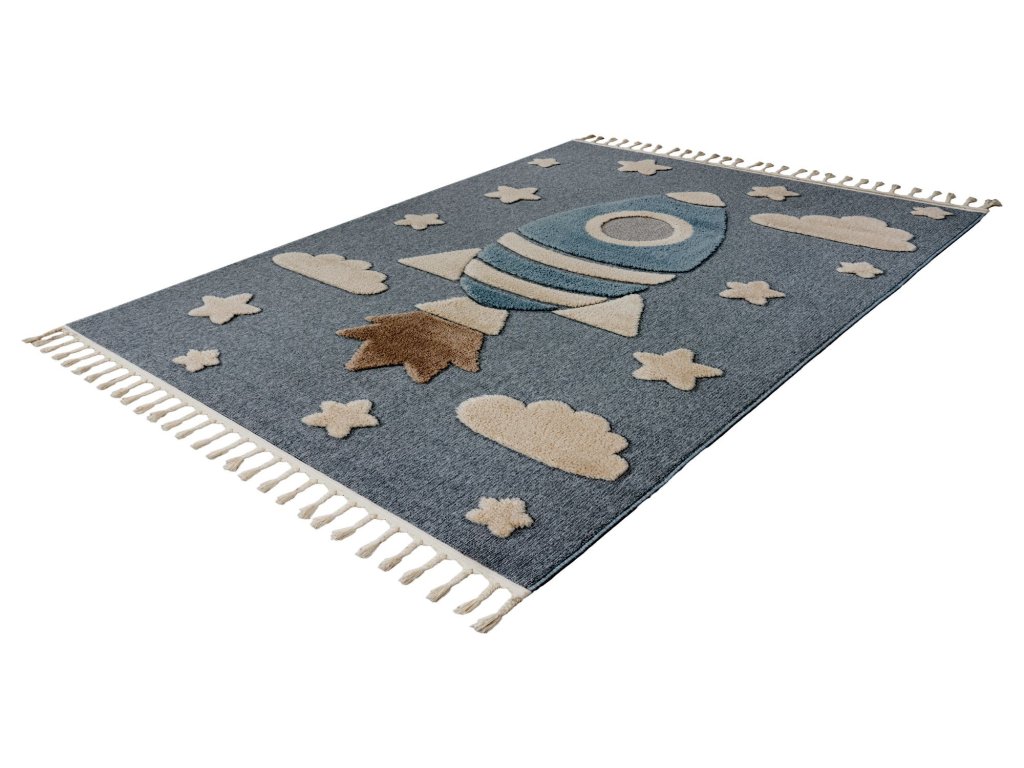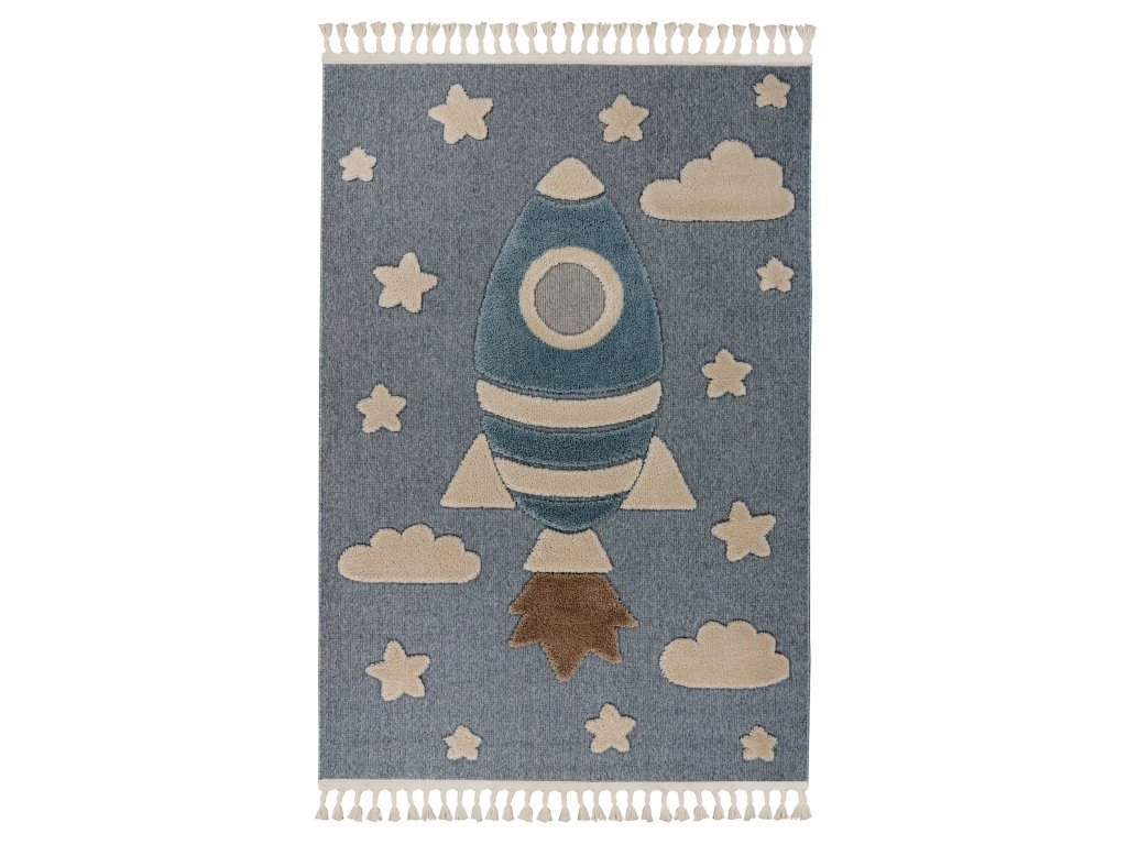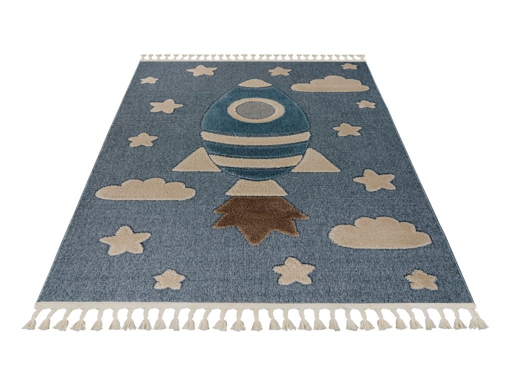 Dětský kusový koberec My Fano 391 Spac v modré barvě a obdélníkovém tvaru je vyroben z materiálu polypropylen frisé. Tento koberec se skvěle hodí do moderního interiéru, ale i do dalších místností, kde oceníte pohodlí i styl. Nadčasový design a kvalitní zpracování z něj dělají ideální volbu pro váš domov. Koberec je certifikován podle standardu ÖekoTex, což zaručuje zdravotní nezávadnost použitých materiálů. Koberec má obšití na delších stranách a na kratších elegantní třásně.