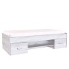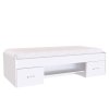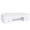 - úložné prostory ve formě police a 2 zásuvek opatřených kolečky (jezdí po podlaze),