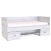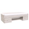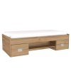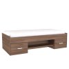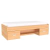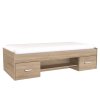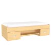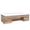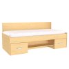Zvýšené lůžko GALA je vhodné jak pro děti - mají velký úložný prostor na lůžkoviny i hračky, tak pro starší osoby, kterým se z takovéto postele lépe vstává. S laťkovým roštem a matrací tl. 16 cm je výška lehací plochy 59 cm. Jedna ze zásuvek může zároveň sloužit jako odkládací stolek. Určeno pro matraci o rozměru 200×90 cm.
