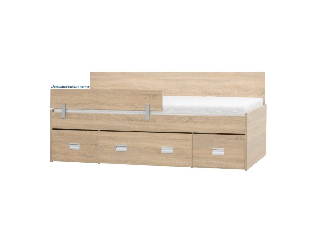 Matrace není součástí a je nutné ji objednat zvlášť. Doporučujeme matrace NELLA NEW či ALNEA v rozměru 90 × 200 cm nebo můžete vybírat další matrace z naší nabídky. Pro jiné (nestandardní) odstíny lamina, rozměry, lamelový rošt, jiné úchytky nebo provedení se na nás neváhejte obrátit s poptávkou.