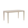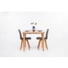 Stůl nabízíme z masivního buku, dubu (na foto) nebo ořechu. Může být pevný nebo rozkládací. Jednoduchý mechanismus rozkládání je ukrytý pod stolovým plátem. Rozložení provede odsunutím páru noh od plátu a vložením rozkládacího dílu, který je pod stolovým plátem. Složený stůl tak působí celistvým dojmem (není vidět žádná dělící spára). Rozklad je možný o 60 cm (resp. o 80 cm). Výhodou je zvětšení rozměru mezi nohami po rozložení - nohy tak zůstávají v rozích stolu, což zajišťuje stejný komfort pro všechny stolující.