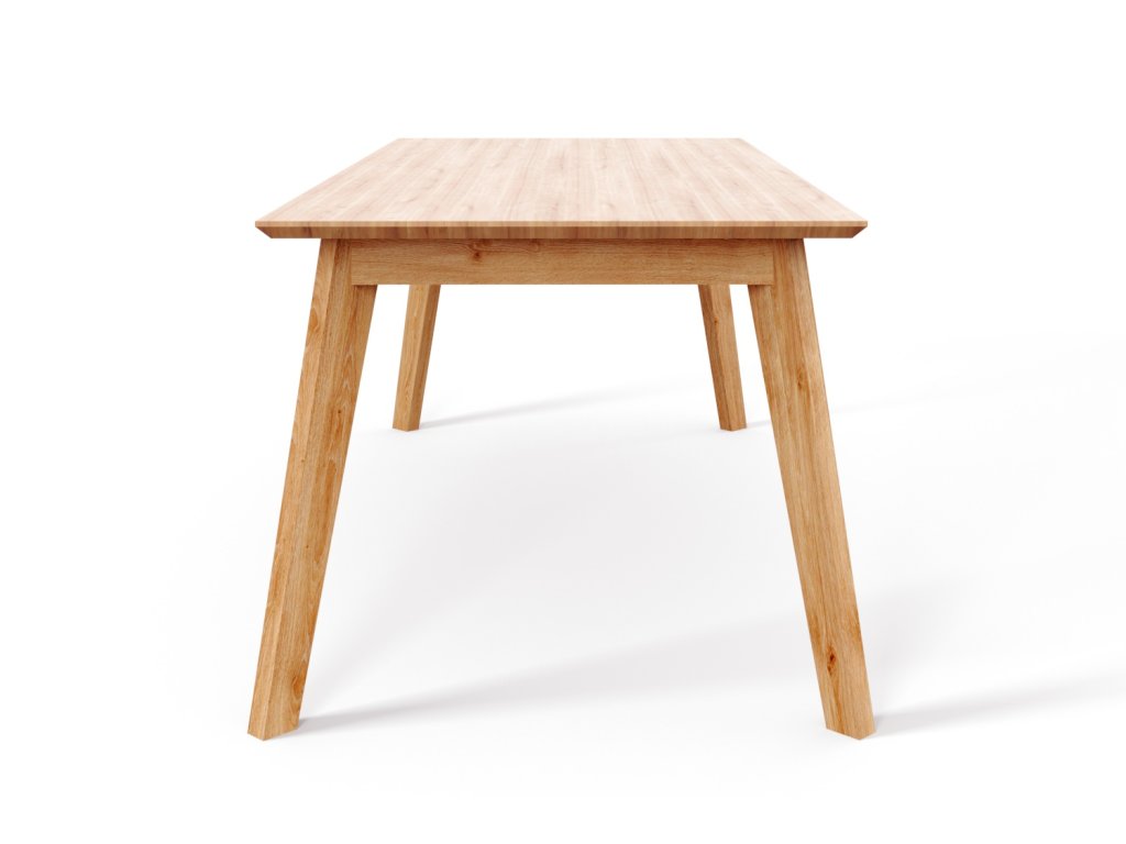 Jídelní stůl LONDON zosobňuje anglickou stylovost a vynalézavost. Hranaté šikmé nohy překrývá stolová deska se zkosenou hranou. Použitá konstrukce zajišťuje velkou stabilitu. Dřevěný povrch je ošetřen transparentním polomatným lakem.