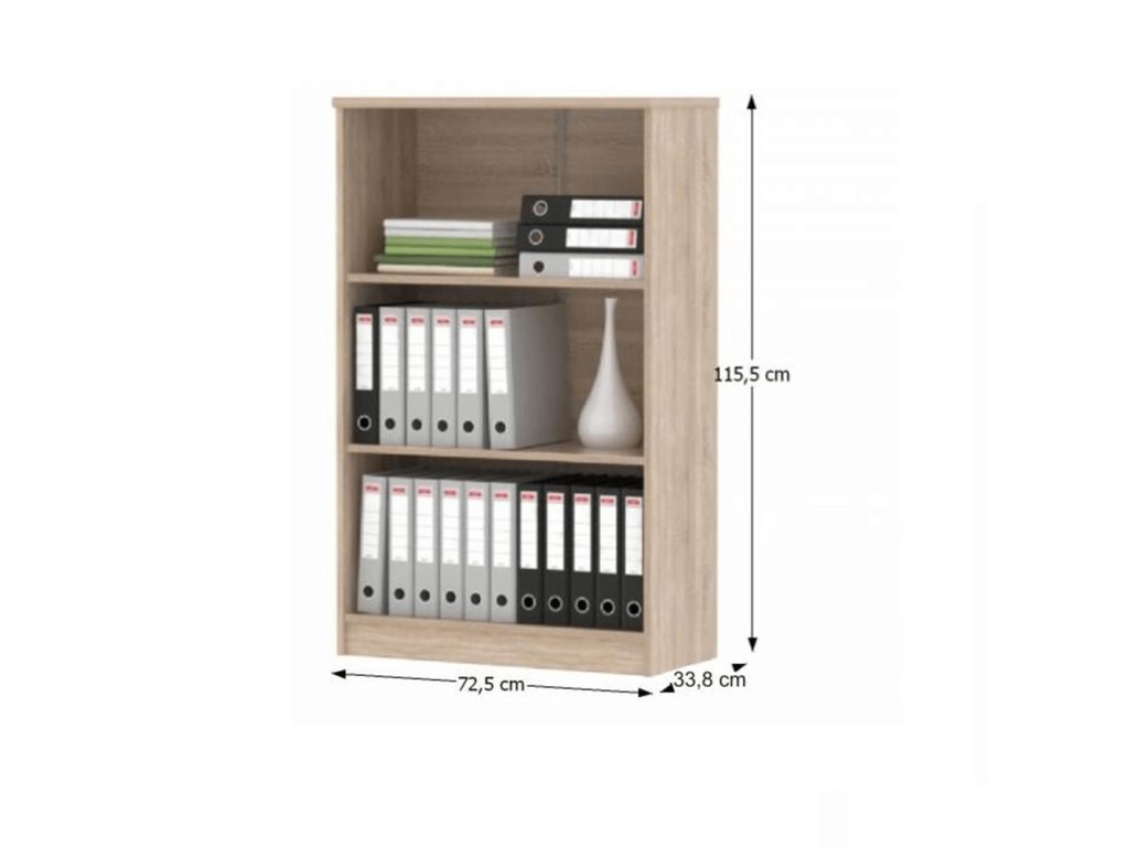- Nízký regál: 72,5 × 33,8 × 115,5 cm