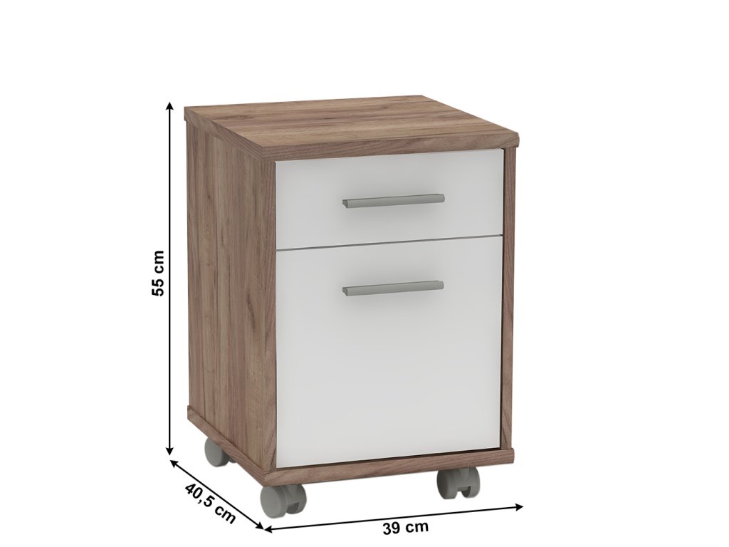 Kancelářská sestava JOHAN v moderním barevném provedení kraft dunkel / bílá je skvělou volbou pro vybavení kanceláře i domácí pracovny. Kombinace psacích stolů, regálů, skříně a kontejneru poskytuje dostatek pracovního i úložného prostoru. Elegantní vzhled v tmavém dekoru se světlými prvky a kvalitní provedení z laminované DTD s ABS hranami zaručují dlouhou životnost a snadnou údržbu.