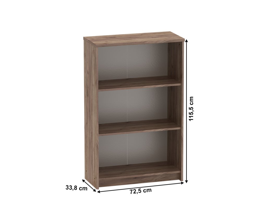 - Nízký regál: 72,5 × 33,8 × 115,5 cm