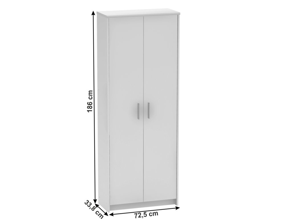 Kancelářská skříň JOHAN v bílém provedení je praktickým a elegantním řešením pro uspořádání dokumentů i kancelářských potřeb. Vysoká policová skříň nabízí dostatek úložného prostoru, který vám pomůže udržet v kanceláři pořádek. Za dvoukřídlými dvířky se nachází čtyři prostorné police, na které uložíte šanony, knihy i kancelářské doplňky.