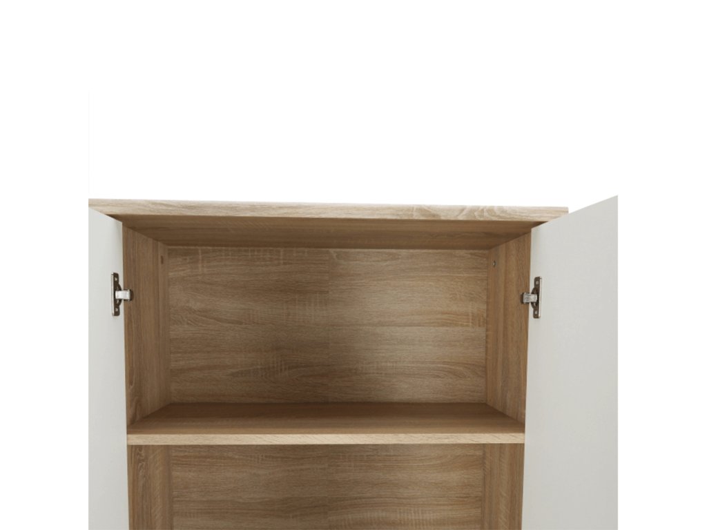 Kancelářská skříň JOHAN v barevném provedení dub sonoma/bílá je praktickým a elegantním řešením pro každou kancelář nebo pracovnu. Díky své výšce a úložnému prostoru pomůže udržet pořádek a organizaci dokumentů, šanonů i osobních věcí. Kombinace přírodního dekoru dubu a bílé barvy dodává interiéru moderní a svěží vzhled.
