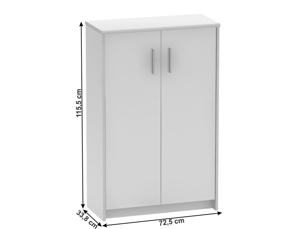 Kancelářská skříňka JOHAN v čistě bílé barvě je ideálním řešením pro uspořádání dokumentů a kancelářských potřeb. Za dvěma plnými dvířky se nacházejí dvě praktické police, které vytvářejí tři odkládací plochy. Díky svému kompaktnímu provedení se skříňka hodí do menších kanceláří i domácích pracoven. Spodní sokl zajišťuje stabilitu a dlouhou životnost.