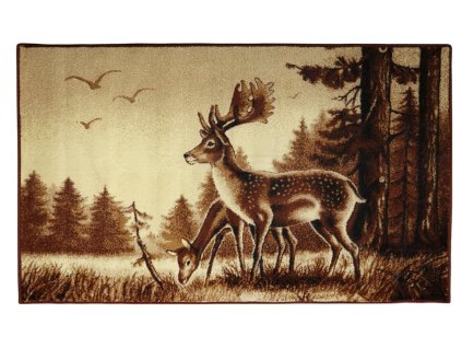 Kusový koberec Daněk je stvořený pro milovníky lesů a hájů. Vyobrazuje daňka s danělou na mýtině v retro hnědém nádechu. Koberec se stane krásný...