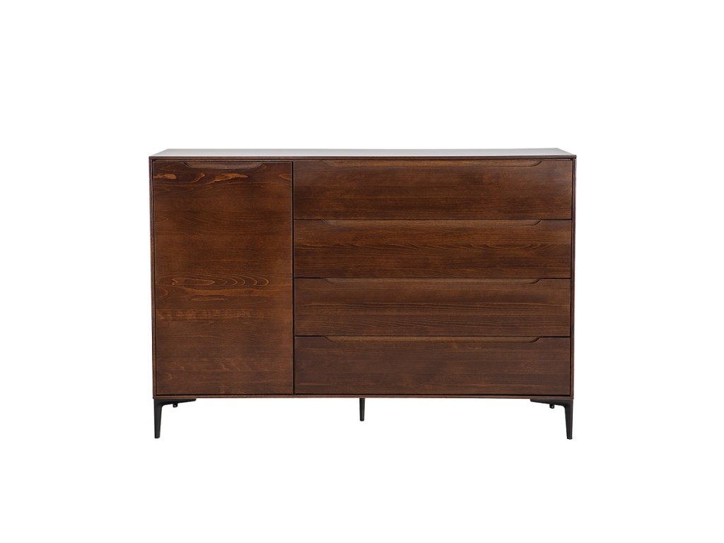 Masivní komoda se 4 zásuvkami a 1 skříňkou.