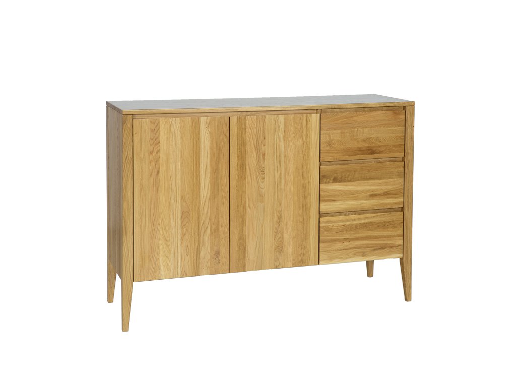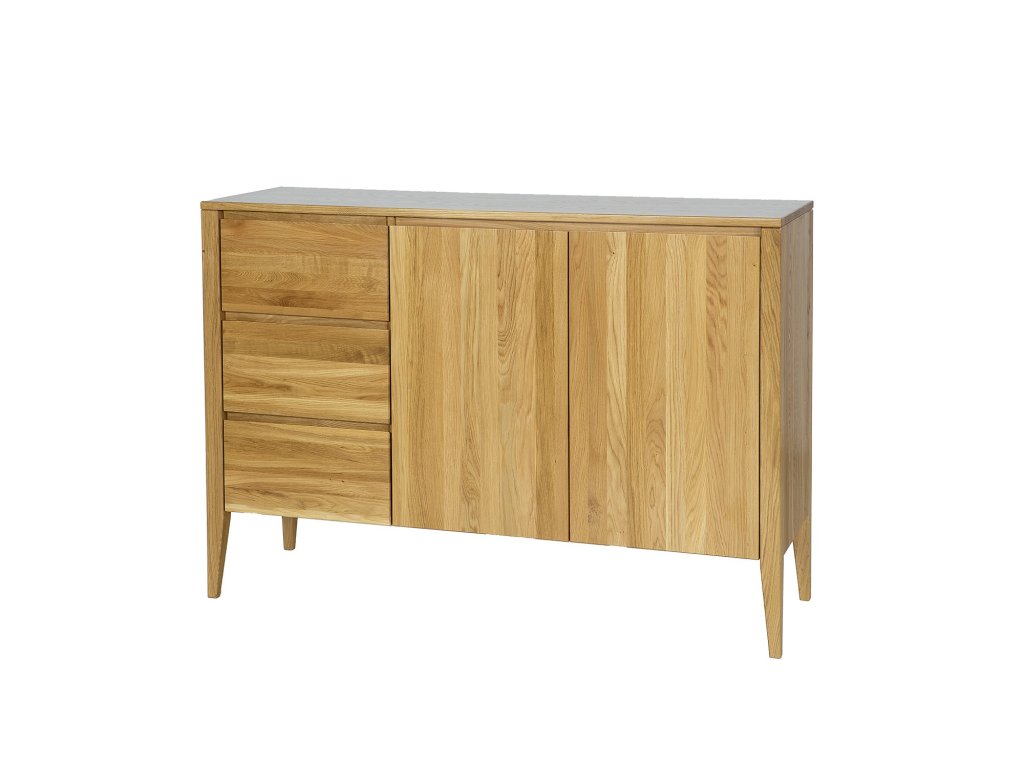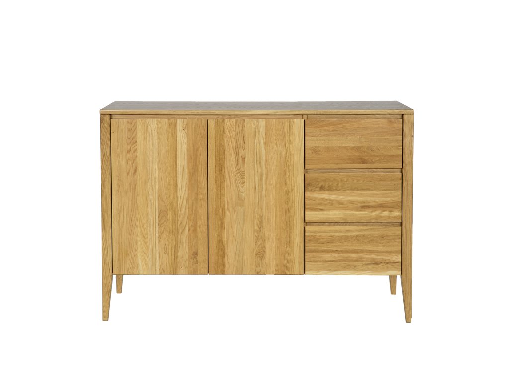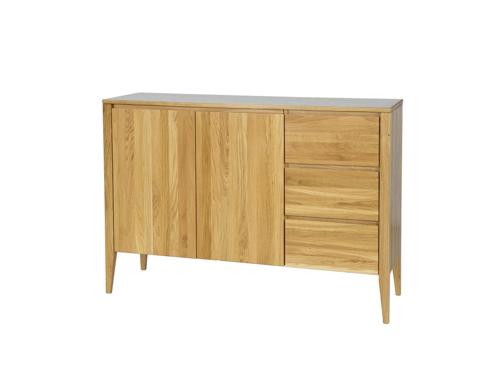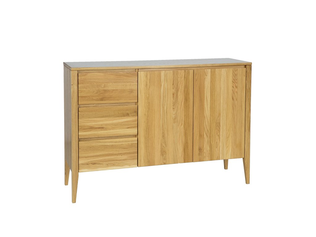 Komoda je vyrobena z pevného dubového masivu. Povrchová úprava je provedena ekologickým lakem, který zvýrazňuje přirozenou kresbu dřeva a zároveň chrání nábytek při každodenním používání.