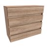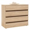 Komoda se 4 zásuvkami originálního a elegantního designu. Komoda je vyrobená z laminovaných desek o tloušťce 18 mm. Bezúchytkové provedení spolu s originálními dekory podtrhují jedinečnost nábytku. Na výběr máte ze 14 standardních barevných dekorů lamina s možností volit i kombinace - na poptávku a bez příplatku. Na foto kombinace Dub natur + Akácie skořice mezi zásuvkami.