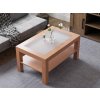 Líbivý konferenční stolek s policí a mléčným sklem vhodný do současných moderních interiérů. Konferenční stolek NOE vyrábíme ve čtyřech standardních rozměrových variantách - čtverec 80×80 cm nebo 90×90 cm a obdélník 70×110 cm, 80×120 cm, což vám umožňuje vybrat si ten správný rozměr pro váš prostor. Výška stolového plátu je 8 cm, nohy jsou čtvercového průřezu 8 × 8 cm. Nohy jsou z masivního buku a stolový plát a police z bukové dýhy. Můžete ho mít v přírodní bukové barvě nebo v 7 standardních odstínech moření dle vzorníku. Dřevěný povrch je upraven bezbarvým lakem.