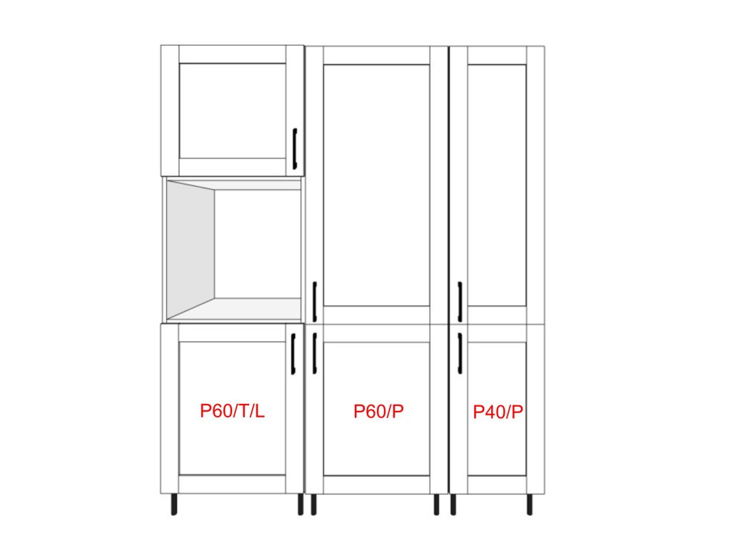 - 1× P40/P - potravinová skříň šířky 40 cm,