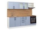 Kuchyňské linky s fóliovanými dvířky v pastelových odstínech jako je modrá denim, šedá ocelová nebo bílá matná přinášejí do vaší kuchyně eleganci a styl. Skříňky s tlumenými panty a kuličkovými výsuvy jsou praktickým doplňkem, který zajistí pohodlné každodenní používání.