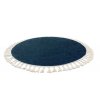 Kusový kruhovvý koberec Berber v barvě navy se bude vyjímat v každém interiéru. Jeho čisté tvárnění zjemní místnost a dodá ji na čistotě a eleganci. Zaujme hlavně vysokým vlasem, který vytváří velmi hustou strukturu. Ta zaručuje jemnost a příjemný pocit na dotek. Koberec se vyznačuje i vysokou stálostí vůči vyblednutí. Po celém obvodě jsou strany zakončeny béžovými spletenými střapci.