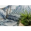 Kusový koberec Botanic s peřím a listy v nádechem světlé modré, který se bude vyjímat v interiéru, ale též i na terase nebo na balkonu. Struktura koberce je tvořena střiženým vlasem, který propůjčuje jemnost a příjemný pocit na dotyk a smyčkový vlas dodává koberci pevnost a odolnost. Každý typ vlasu má i jinou výšku, to vytváří krásný 3D efekt. Po celém obvodu koberce je pevné obšití, které zaručí stálost.