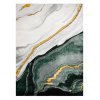 Koberec Emerald 1017 vyobrazuje velmi reálně mramor v láhvově zeleném zbarvení se zlatým prvkem. Tento koberec se stane výrazným středobodem v místnosti. Velkou předností tohoto koberce není jen vzhled, ale též je i velmi kvalitní. Spojením polypropylenu a polyesteru, vytváří velmi kvalitní, pevnou a na dotyk příjemnou strukturu, která je odolná a stálá. Ve vláknech polyester též vytváří odlesky a tím prohlubuje estetický ráz koberce. Koberec lze položit v prostorech s podlahovým vytápěním.