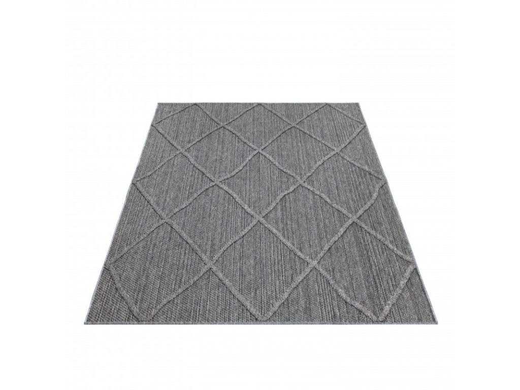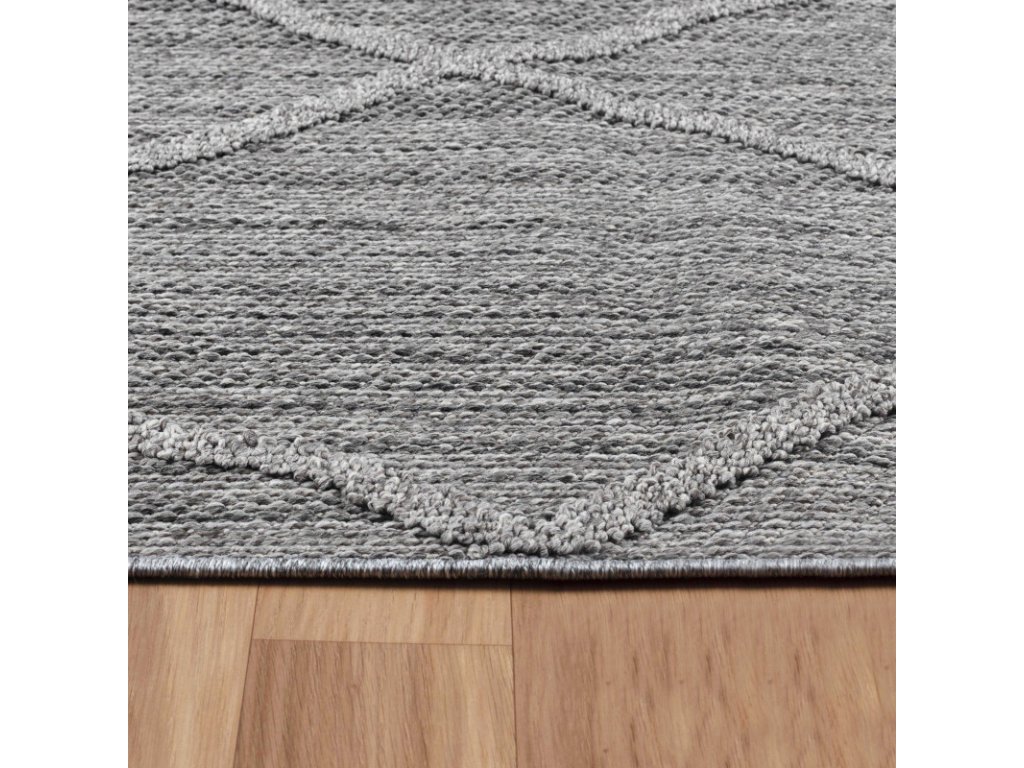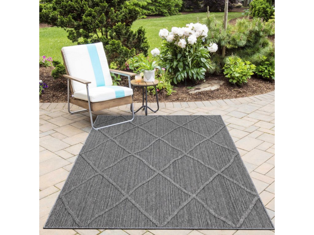 Tento koberec s 3D efektem hravě skryje nečistoty, a to díky tmavě šedé barvě a melírování. Navíc se snadno čistí pomocí vysavače. Jeho další předností je odolnost, a to i vůči povětrnostním vlivům. Můžete ho proto položit doma i v exteriéru.