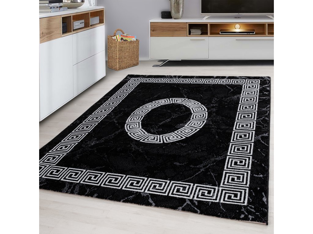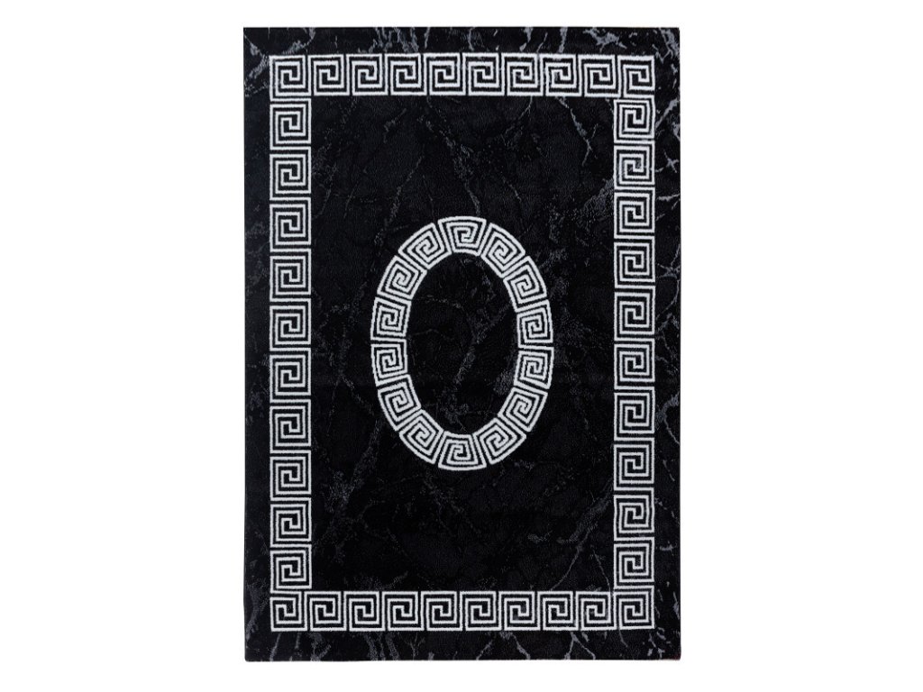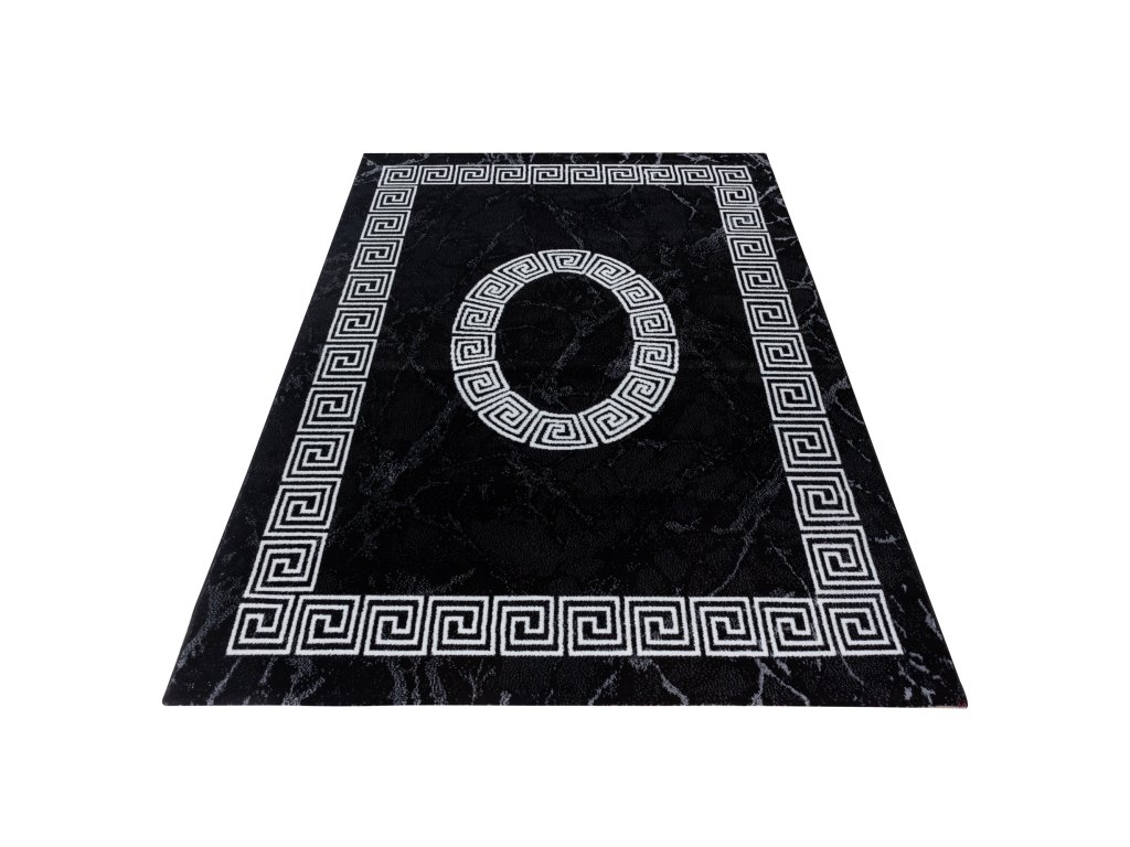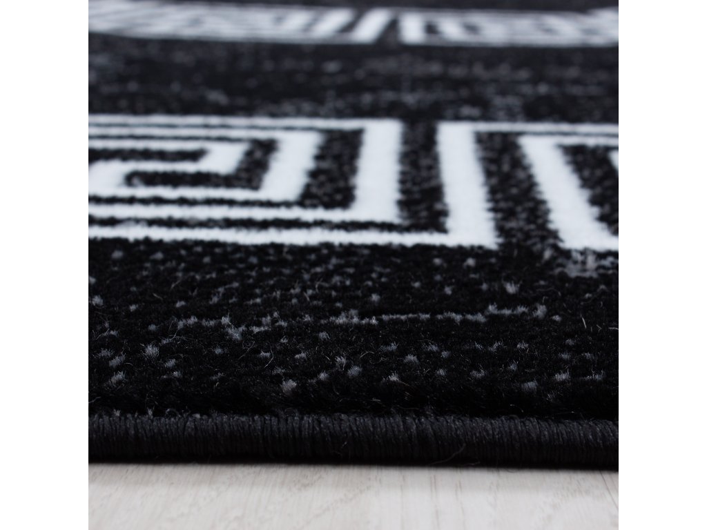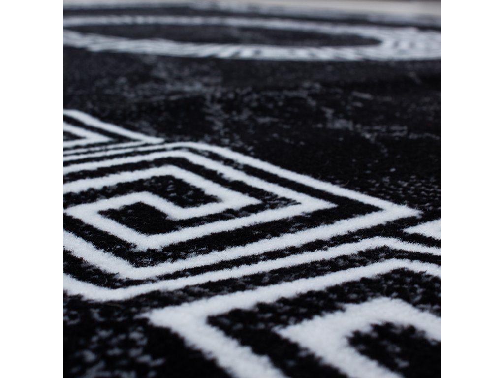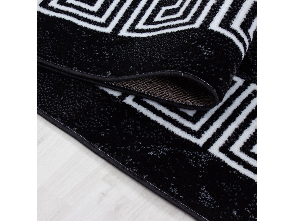 Černý kusový koberec se zajímavým a nápaditým bílým vzorem, který udělá radost v obývacím pokoji, ložnici nebo i jinde v domácnosti. Tento koberec za velmi dobrou cenu nabízí antistatický povrch, který se díky krátkému vlasu snadno čistí a udržuje. Koberec se vyrábí ze 100% PP heatset v Turecku. Tato technologie mu poskytuje především vyšší pevnost a odolnost.