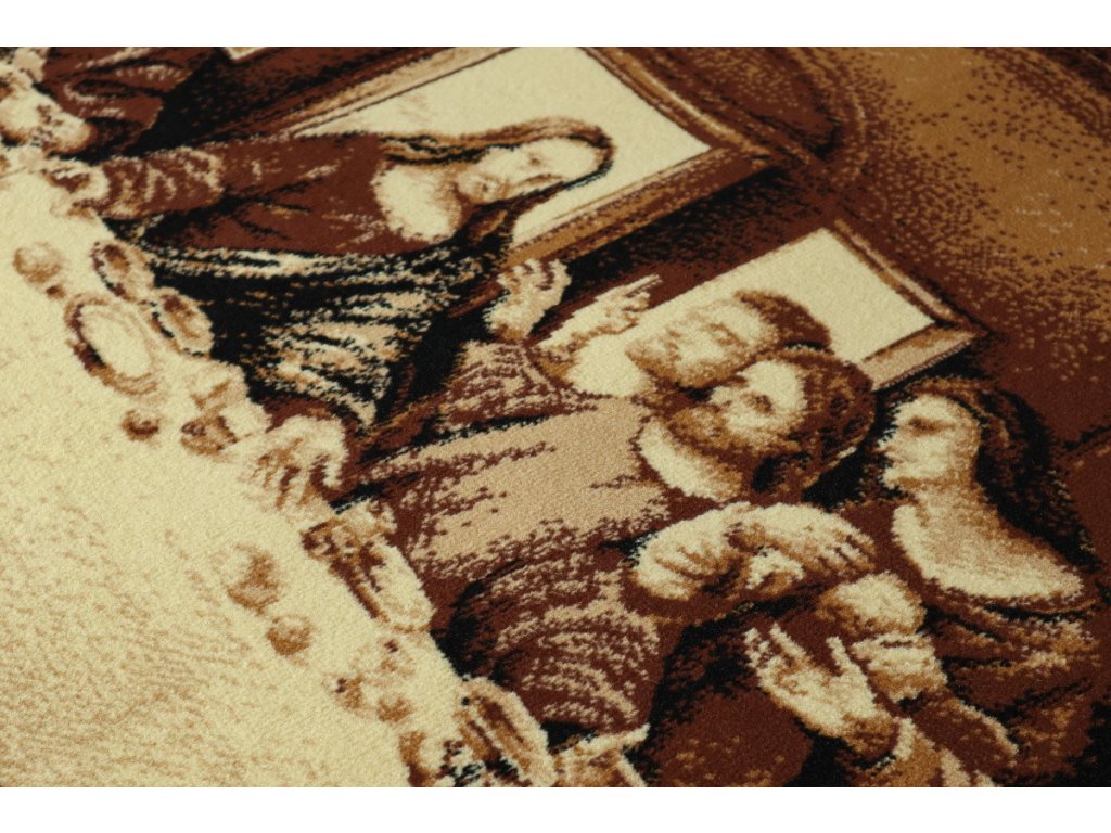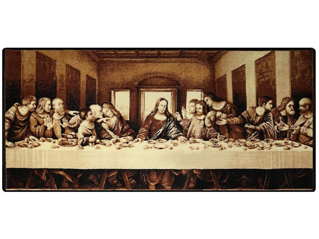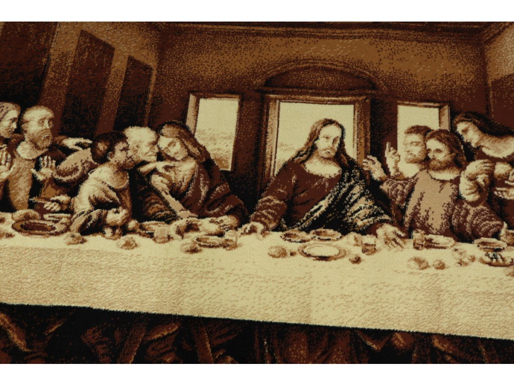 Kusový koberec zachycující Ježíše a apoštoly při poslední večeři. Koberec se stane velmi krásným prvkem v interiéru. Koberec má středně vysoký střižený vlas, který je ze 100% polypropylenu BCF (Bulked Continuous Filament). Tento typ polypropylenového vlákna vzniká spojováním materiálu do dlouhých kontinuálních filamentů. To vytváří velmi pevnou a odolnou strukturu, která též propůjčuje koberci jednoduchou údržbu a čištění. Celý obvod je obšit kvalitní a pevnou nití.
