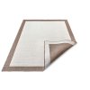 Béžovo-hnědý inverzní koberec, který z každé strany vypadá jinak. V podstatě se tak nejedná o jeden, ale rovnou dva koberce. Vyrábí se z polypropylenového vlákna a má velice krátké smyčky. Mezi jeho přednosti tak patří odolnost, snadná údržba, antistatická úprava a v neposlední řadě multifunkční využití doma i v exteriéru.