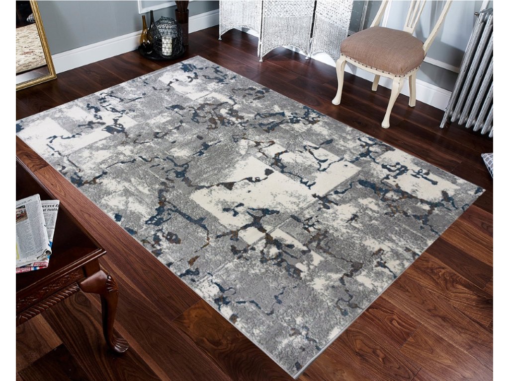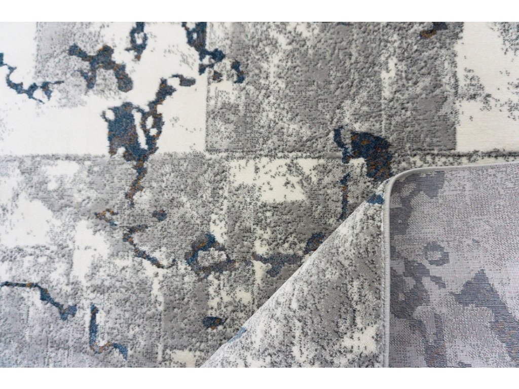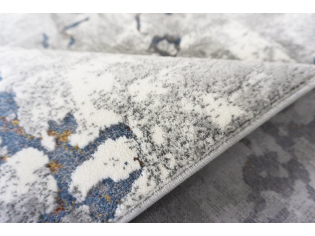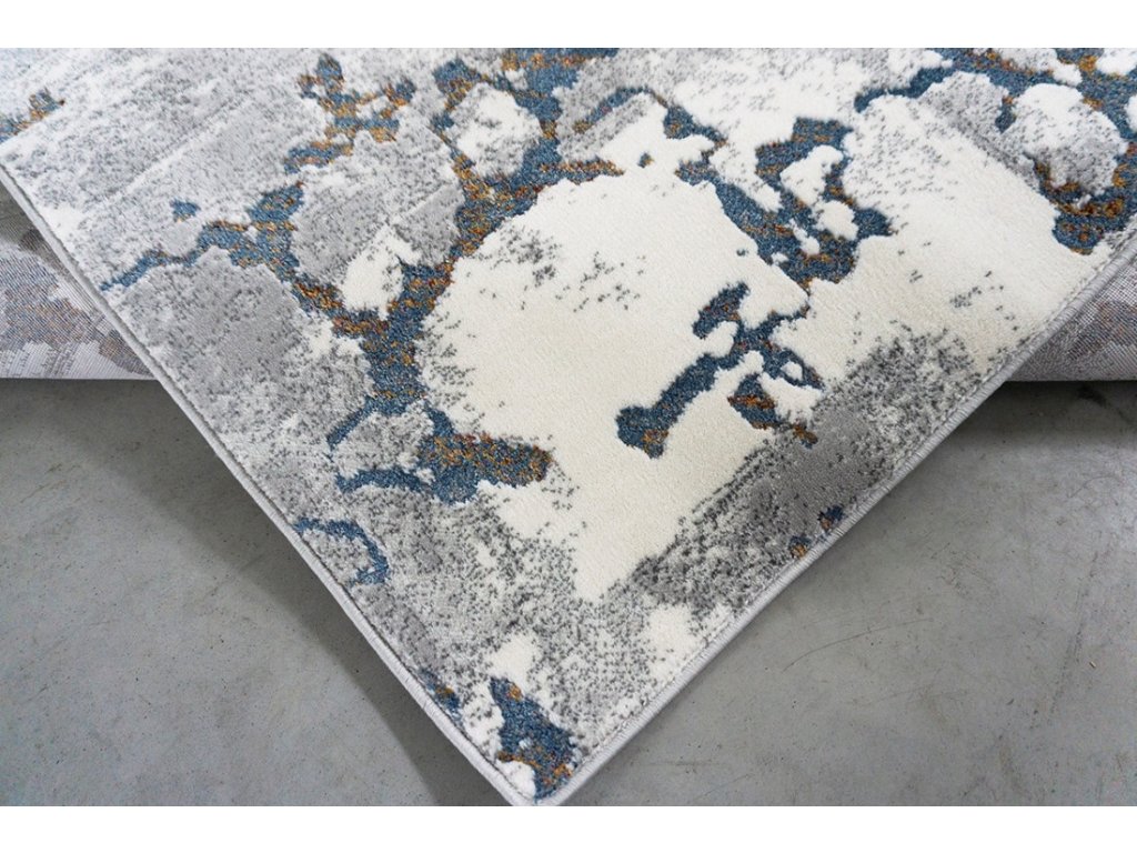 Zajímavý moderní koberec s abstraktním motivem, který kombinuje šedo-bílý základ s modrými a hnědými prvky. Jedná se o kvalitní kousek vyrobený z polyesterového vlákna, takže je měkký a příjemný na dotek i došlap. Středně vysoký střižený vlas je snadný na údržbu a další předností koberce je obšití po celém obvodu nebo antistatická úprava.