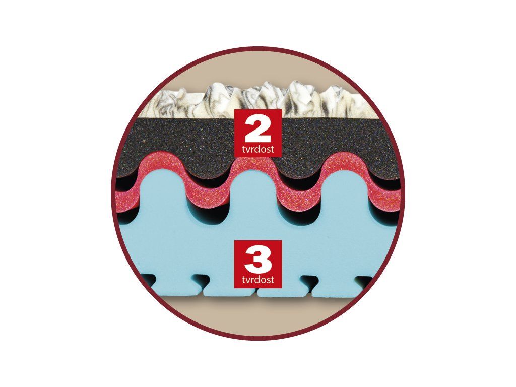 - oboustranná matrace se dvěma tuhostmi (2 a 3),
