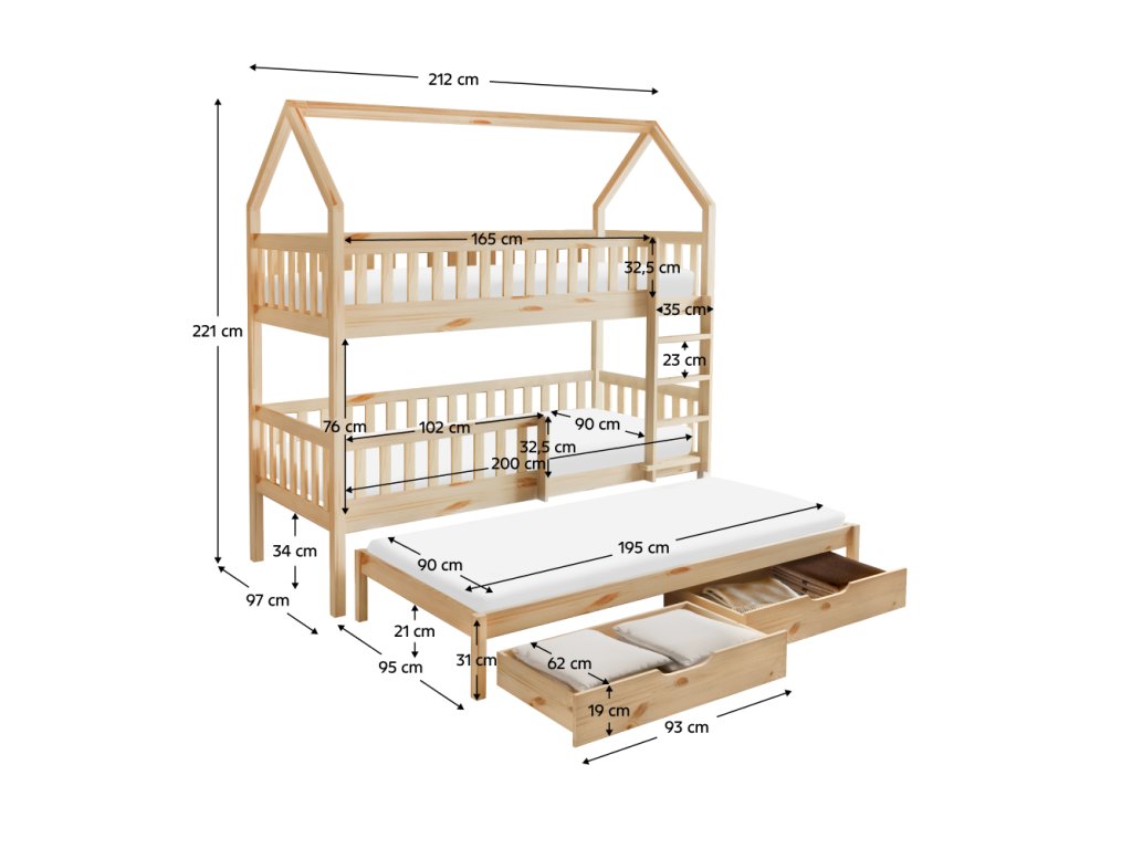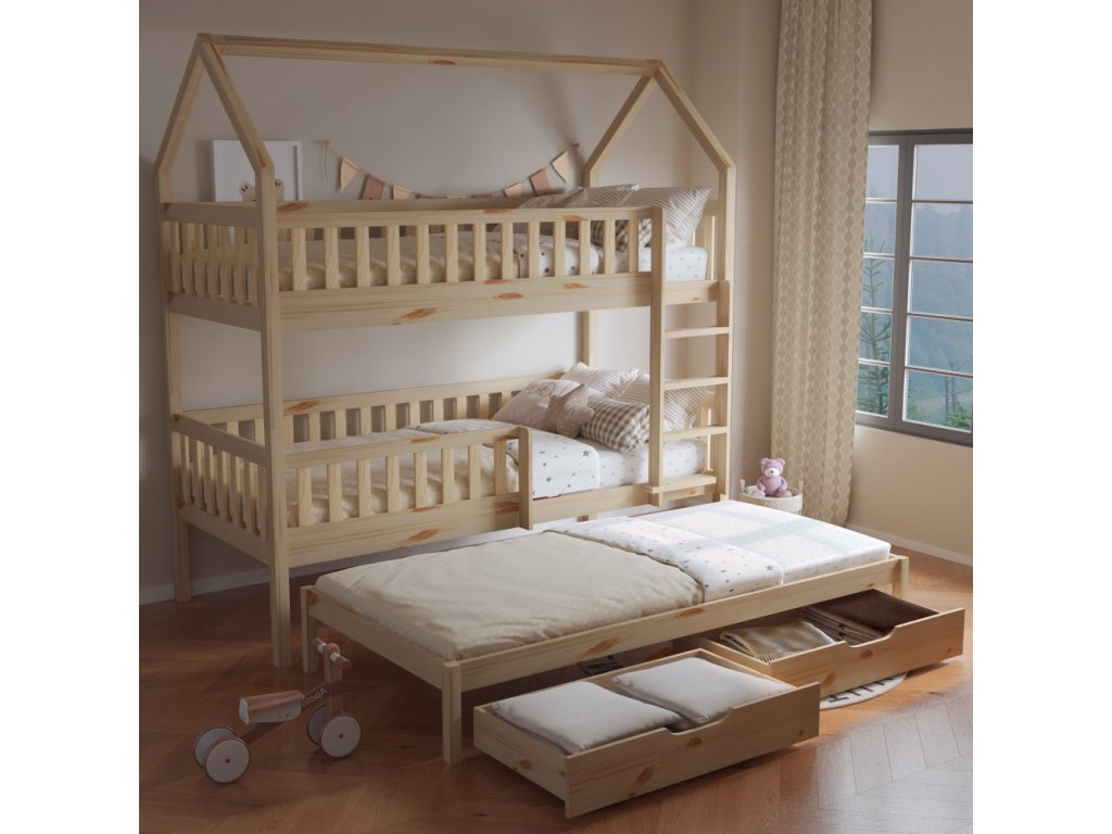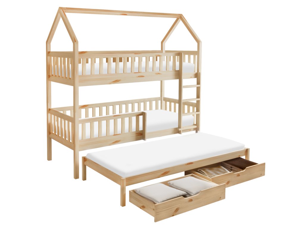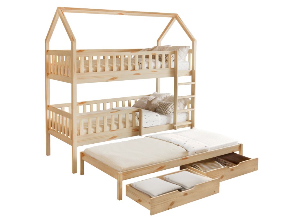 Montessori patrová postel s přistýlkou, přírodní, VENITA TYP 1