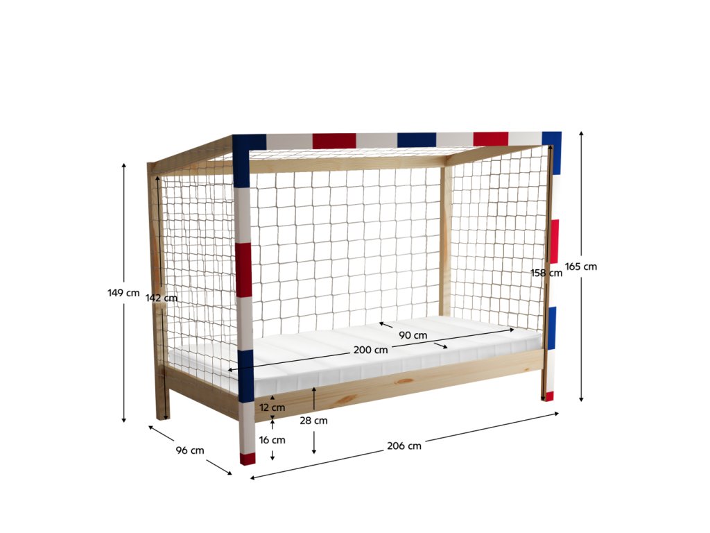 Montessori postel, přírodní/bílá/modrá/červená, 90x200, FUTAL