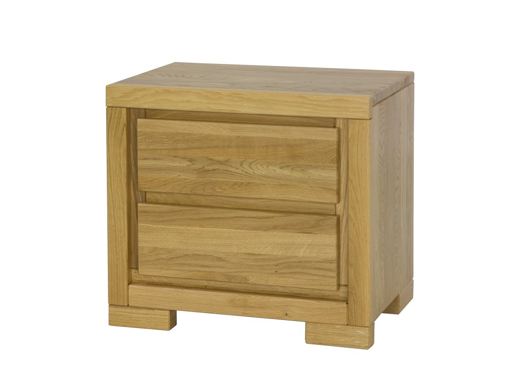 Dubový noční stolek s masivními nohami a zásuvkou.