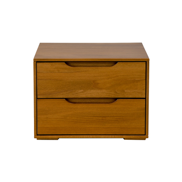 Stolek je vybaven dvěma prostornými zásuvkami bez úchytů, které umožňují snadné otevírání díky precizně frézovaným drážkám. Na horní desku můžete umístit lampu, knihu či rodinnou fotografii – vše, co chcete mít před spaním po ruce.