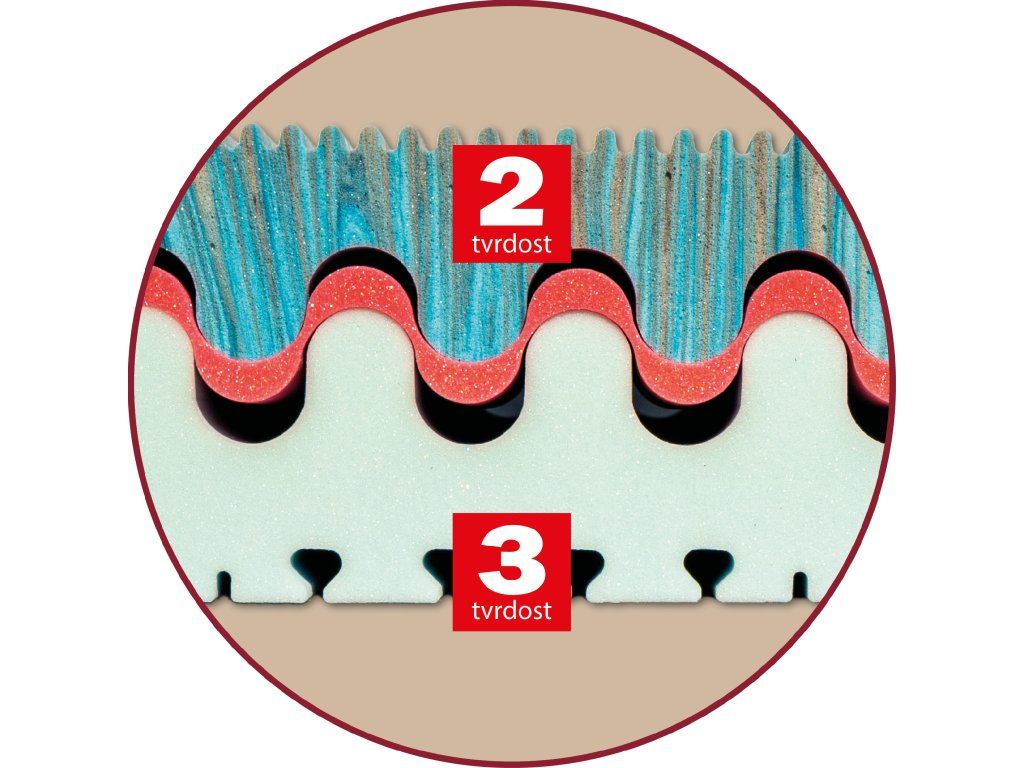 - partnerská matrace se dvěma tuhostmi (2 a 3),