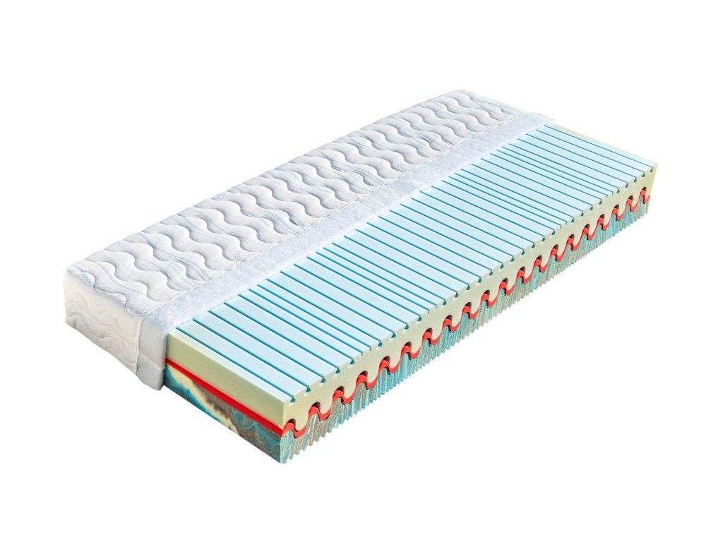 Matrace je 7zónová, což znamená cílenou podporu jednotlivých částí těla pro správné držení páteře a vyšší komfort. Je vhodná pro všechny typy roštů, včetně polohovacích, a díky použití ekologického lepidla na vodní bázi je šetrná i k životnímu prostředí.