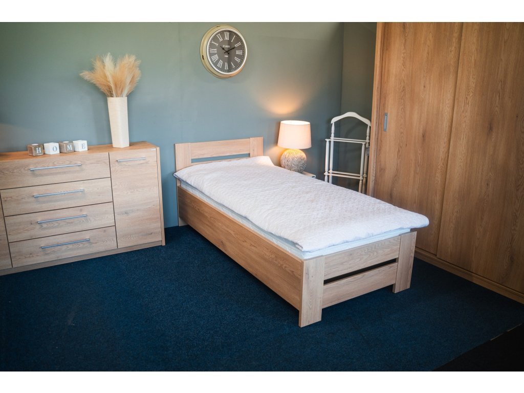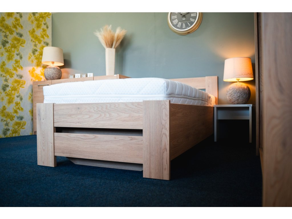 Zvýšená lehací plocha 53 cm - s matrací tl. 16 cm. S matrací větší tloušťky dosáhnete větší výšky lehací plochy. Matrace není součástí a je nutné ji objednat zvlášť. Lůžko je určeno pro matraci o rozměru 200 × 90 cm. Z matrací doporučujeme např. matrace ALNEA, LIMA nebo OLYMPIAObjevte i další matrace, které perfektně doplní tuto postel.