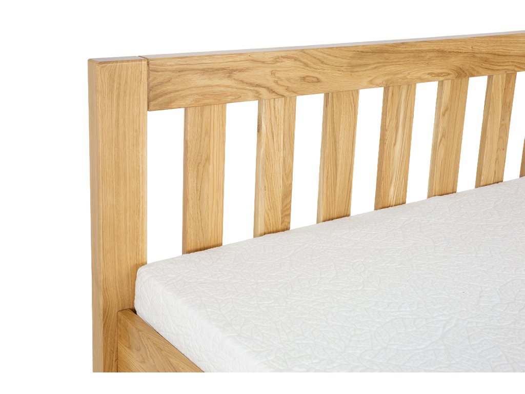 Postel CLASSIC dub z masivního dubu je spojením nadčasové estetiky a vysoké odolnosti. Charakteristické čelo s vertikálními příčkami dodává konstrukci lehkost a elegantní vzhled, díky čemuž se skvěle hodí jak do klasických, tak i moderních ložnic.