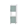 Potravinová skříň z kuchyňské sestavy PASTEL s prostorem na vestavnou troubu. Pravá dvířka (panty na pravé straně), kovová úchytka NAKANA černá (chrom mat) ve svislé poloze. Skříňka je vyrobena z bílé laminované dřevotřískové desky tl. 18 mm s ABS hranami, záda bílý sololak. Dvířka jsou vyrobeny z MDF desky, profilovaná, potažená barevnou fólií. Na výběr 5 odstínů v pastelových barvách. Skříňka má vrchní a spodní otevírání, uvnitř se nachází dvě police, které poskytují dostatek úložného prostoru pro potraviny a kuchyňské potřeby.