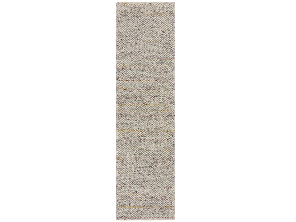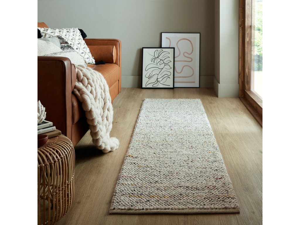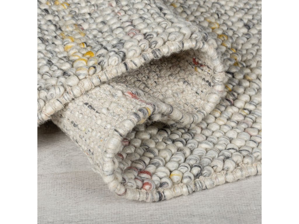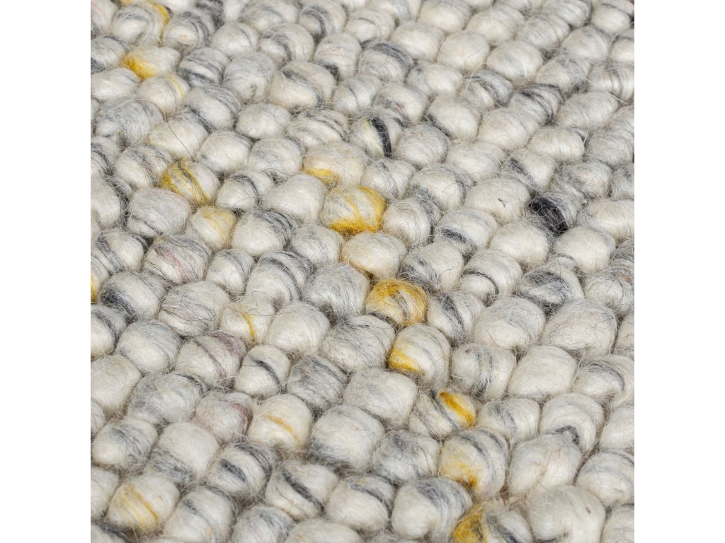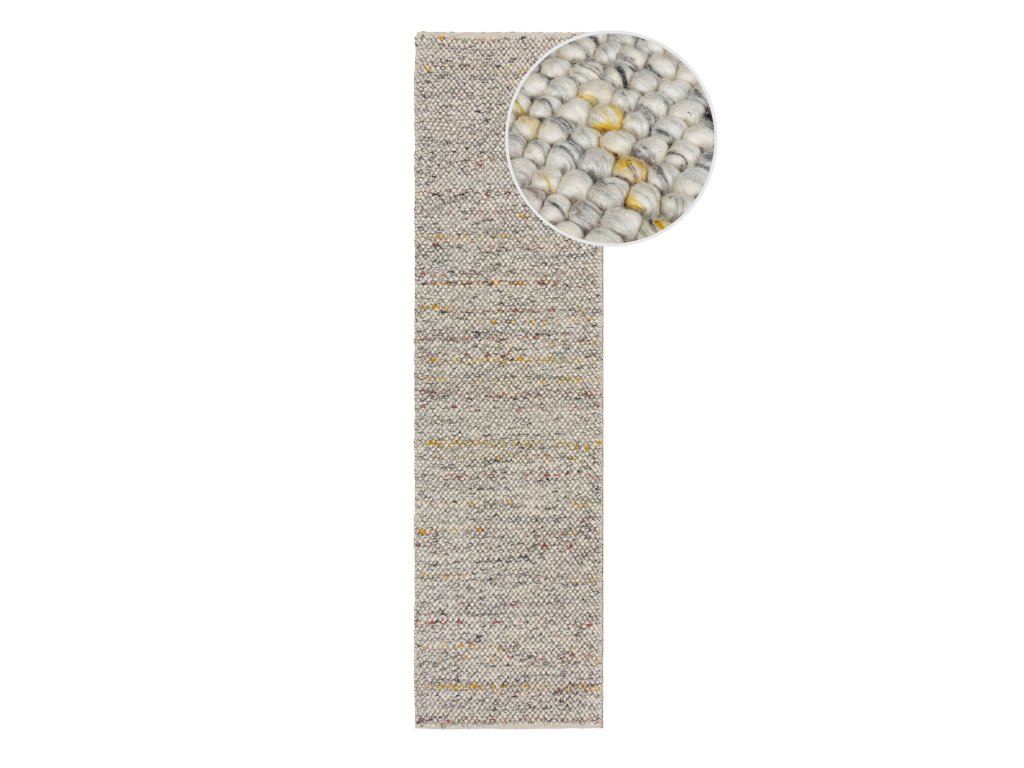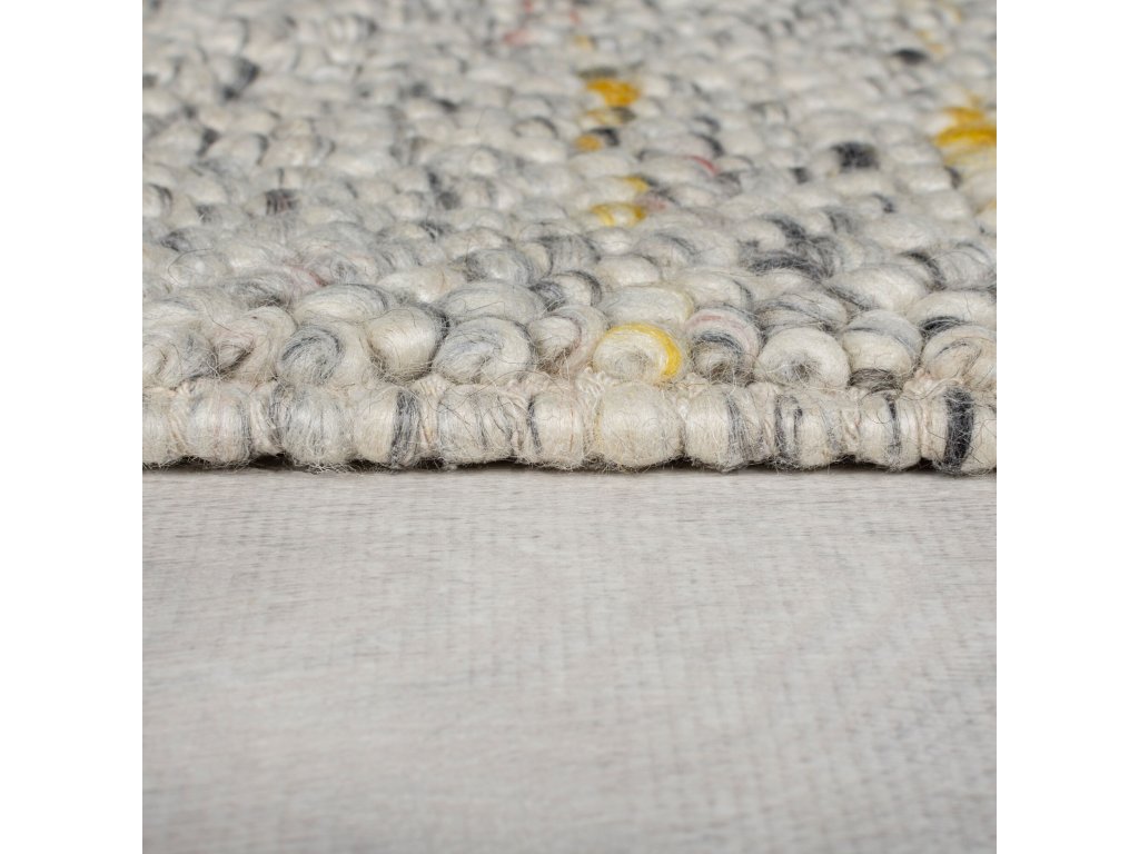 Běhoun s krémově bílými a černými vlákny jako základem je oživen žlutými a červenými akcenty, které vytvářejí hravý a moderní vzhled. Strukturovaný povrch připomínající jemné kamínky poskytuje příjemný pocit při chůzi a dodává interiéru zajímavý prvek. Kombinace vlny a polyesteru zajišťuje skvělou izolaci proti chladu i hluku.
