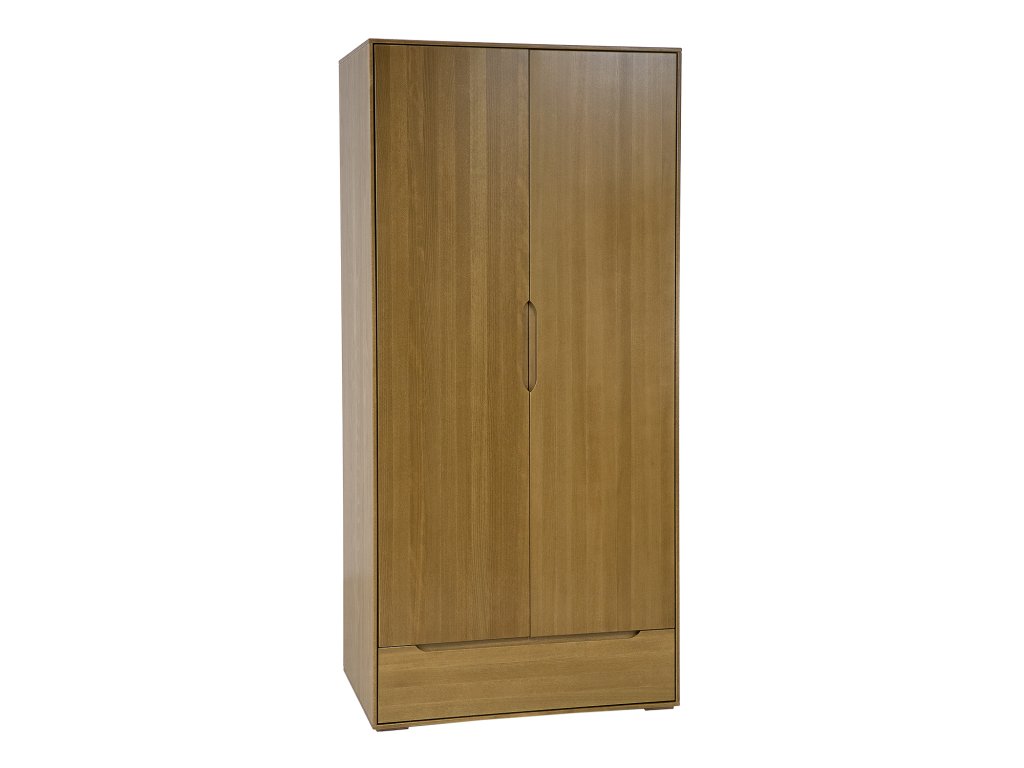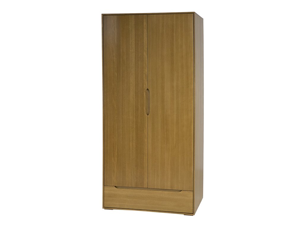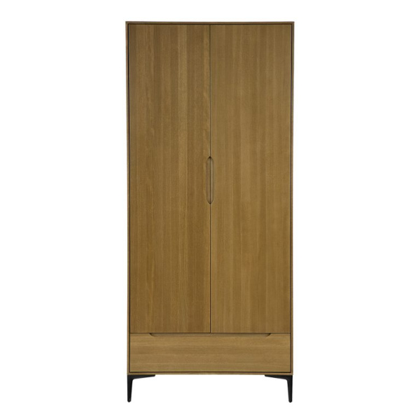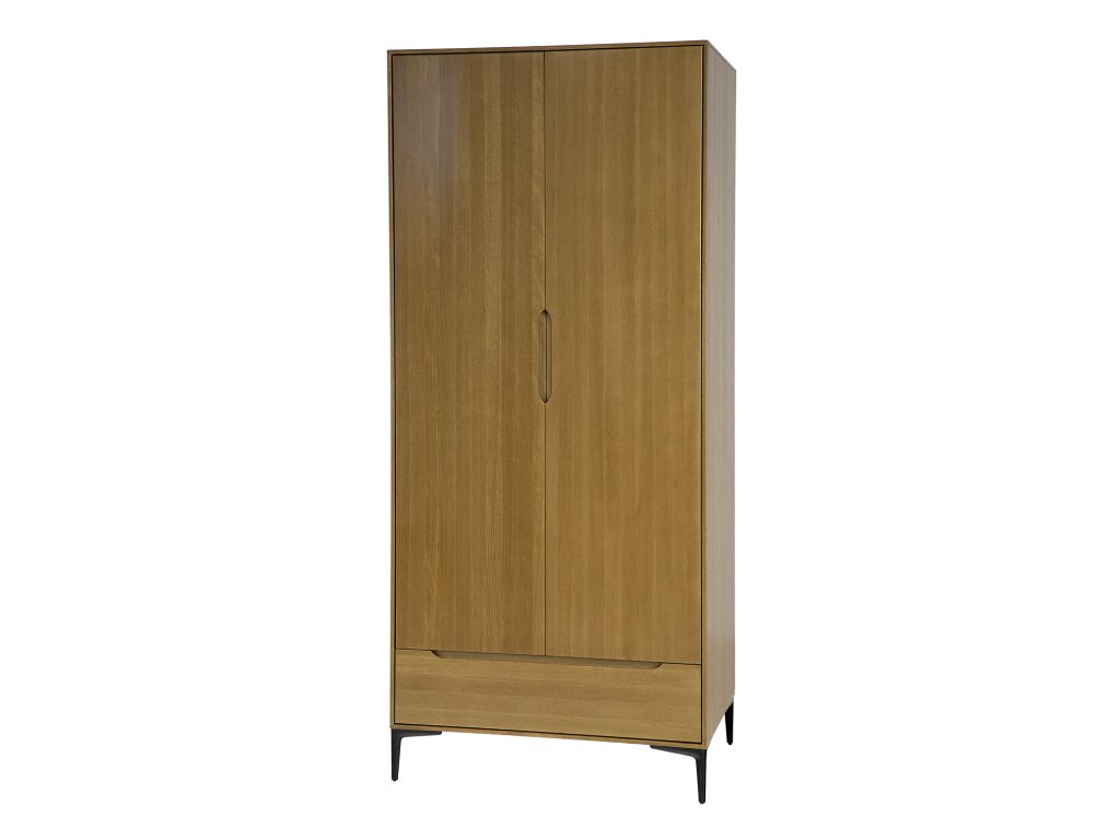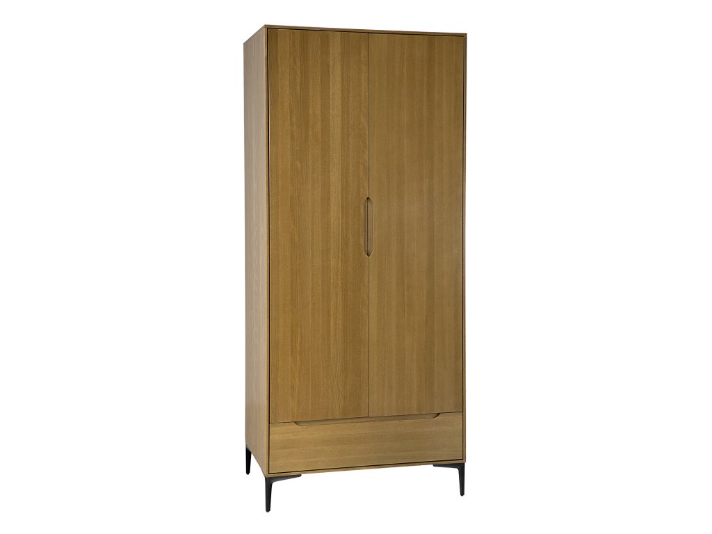 Vnitřní uspořádání je navrženo s důrazem na praktičnost – horní police poskytuje prostor pro složené oblečení, pod ní se nachází šatní tyč na oděvy na ramínkách. Ve spodní části jsou umístěny dva hluboké šuplíky vhodné pro prádlo, doplňky nebo menší oděvy. Skříň spočívá na dřevěných nožkách, případně lze zvolit moderní černé kovové nohy, které dodají nábytku osobitý charakter.