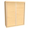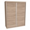 Vlastnosti: šatní skříň s posuvnými dveřmi, variabilní vnitřní uspořádání díky předvrtaným otvorům, 2 × šatní tyč, 4 × police s nastavením vždy ve 3 výškových úrovních, laminovaná dřevotříska, ABS hrany, zádová deska bílý sololak, kvalitní kovové pojezdy dveří - horní závěs, dole vodící lišta, originální česká výroba - Český výrobek, lze osadit zrcadlem. Na výběr ze 14 standardních barevných dekorů lamina,