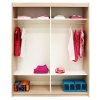 2-dveřová šatní skříň s praktickými posuvnými dveřmi, které při otevření nezavazí. Variabilní vnitřní uspořádání - 2 × šatní tyč a 4 × výškově nastavitelné police.