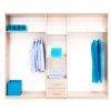 - krajní oddíly s šatní tyčí, prostřední oddíl s policemi a zásuvkami,