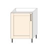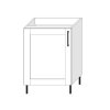 Spodní skříňka S60/1D/L jednodvířková s panty vlevo z kuchyňské sestavy PASTEL. Skříňka s 1 policí, kovová úchytka NAKANA černá (chrom mat) ve svislé poloze. Skříňka je vyrobena z bílé laminované dřevotřískové desky tl. 18 mm s ABS hranami, záda bílý sololak. Dvířka jsou vyrobeny z MDF desky, profilovaná, potažená barevnou fólií. Na výběr 5 odstínů v pastelových barvách. Uvnitř skříňky se nachází jedna prostorná police, která poskytuje dostatek úložného prostoru pro vaše kuchyňské potřeby.