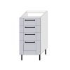 Spodní skříňka S40Z z kuchyňské sestavy PASTEL s 3 malými zásuvkami a 1 větší zásuvkou, kovové úchytky NAKANA černá (chrom mat) ve vodorovné poloze. Skříňka je určená pod pracovní desku a je vyrobena z bílé laminované dřevotřískové desky tl. 18 mm s ABS hranami, záda bílý sololak. Dvířka jsou vyrobeny z MDF desky, profilovaná, potažená barevnou fólií. Na výběr 5 odstínů v pastelových barvách. Zásuvky jsou osazeny kvalitními kuličkovými pojezdy s plnovýsuvem, takže můžete vyjet s celou zásuvkou až do úplného konce a vzadu v šuplíku tak nevzniká nepřehledné, těžko dostupné místo.